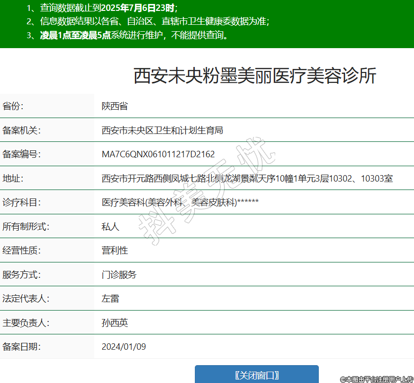 省份:陜西省備案機(jī)關(guān):西安市未央?yún)^(qū)衛(wèi)生和計(jì)劃生育局備案編號(hào):MA7C6QNX061011217D2162地址:西安市開(kāi)元路西側(cè)鳳城七路北側(cè)龍湖景粼天序10幢1單元3層10302、10303室診療科目:醫(yī)療美容科(美容外科、美容皮膚科)******所有制形式:私人經(jīng)營(yíng)性質(zhì):營(yíng)利性服務(wù)方式:門(mén)診服務(wù)法定代表人:左雷主要負(fù)責(zé)人:孫西英備案日期:2024/01/09 -