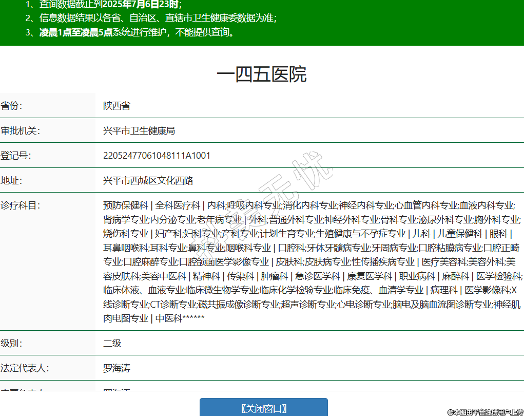 省份:陜西省審批機(jī)關(guān):興平市衛(wèi)生健康局登記號:22052477061048111A1001地址:興平市西城區(qū)文化西路診療科目:預(yù)防保健科 | 全科醫(yī)療科 | 內(nèi)科;呼吸內(nèi)科專業(yè);消化內(nèi)科專業(yè);神經(jīng)內(nèi)科專業(yè);心血管內(nèi)科專業(yè);血液內(nèi)科專業(yè);腎病學(xué)專業(yè);內(nèi)分泌專業(yè);老年病專業(yè) | 外科;普通外科專業(yè);神經(jīng)外科專業(yè);骨科專業(yè);泌尿外科專業(yè);胸外科專業(yè);燒傷科專業(yè) | 婦產(chǎn)科;婦科專業(yè);產(chǎn)科專業(yè);計劃生育專業(yè);生殖健康與不孕癥專業(yè) | 兒科 | 兒童保健科 | 眼科 | 耳鼻咽喉科;耳科專業(yè);鼻科專業(yè);咽喉科專業(yè) | 口腔科;牙體牙髓病專業(yè);牙周病專業(yè);口腔粘膜病專業(yè);口腔正畸專業(yè);口腔麻醉專業(yè);口腔頜面醫(yī)學(xué)影像專業(yè) | 皮膚科;皮膚病專業(yè);性傳播疾病專業(yè) | 醫(yī)療美容科;美容外科;美容皮膚科;美容中醫(yī)科 | 精神科 | 傳染科 | 腫瘤科 | 急診醫(yī)學(xué)科 | 康復(fù)醫(yī)學(xué)科 | 職業(yè)病科 | 麻醉科 | 醫(yī)學(xué)檢驗科;臨床體液、血液專業(yè);臨床微生物學(xué)專業(yè);臨床化學(xué)檢驗專業(yè);臨床免疫、血清學(xué)專業(yè) | 病理科 | 醫(yī)學(xué)影像科;X線診斷專業(yè);CT診斷專業(yè);磁共振成像診斷專業(yè);超聲診斷專業(yè);心電診斷專業(yè);腦電及腦血流圖診斷專業(yè);神經(jīng)肌肉電圖專業(yè) | 中醫(yī)科******級別:二級法定代表人:羅海濤主要負(fù)責(zé)人:羅海濤執(zhí)業(yè)許可證有效期:2024/05/14 -至- 2029/05/14 -