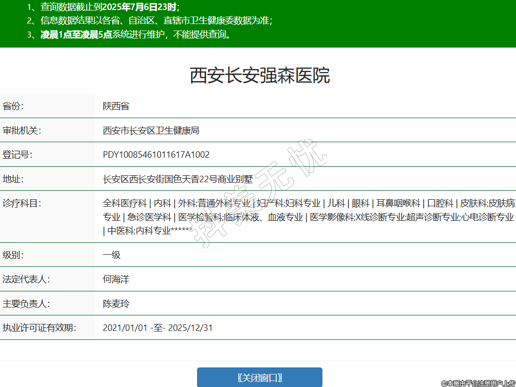 省份:陜西省審批機(jī)關(guān):西安市長(zhǎng)安區(qū)衛(wèi)生健康局登記號(hào):PDY10085461011617A1002地址:長(zhǎng)安區(qū)西長(zhǎng)安街國(guó)色天香22號(hào)商業(yè)別墅診療科目:全科醫(yī)療科 | 內(nèi)科 | 外科;普通外科專(zhuān)業(yè) | 婦產(chǎn)科;婦科專(zhuān)業(yè) | 兒科 | 眼科 | 耳鼻咽喉科 | 口腔科 | 皮膚科;皮膚病專(zhuān)業(yè) | 急診醫(yī)學(xué)科 | 醫(yī)學(xué)檢驗(yàn)科;臨床體液、血液專(zhuān)業(yè) | 醫(yī)學(xué)影像科;X線診斷專(zhuān)業(yè);超聲診斷專(zhuān)業(yè);心電診斷專(zhuān)業(yè) | 中醫(yī)科;內(nèi)科專(zhuān)業(yè)******級(jí)別:一級(jí)法定代表人:何海洋主要負(fù)責(zé)人:陳麥玲執(zhí)業(yè)許可證有效期:2021/01/01 -至- 2025/12/31 -