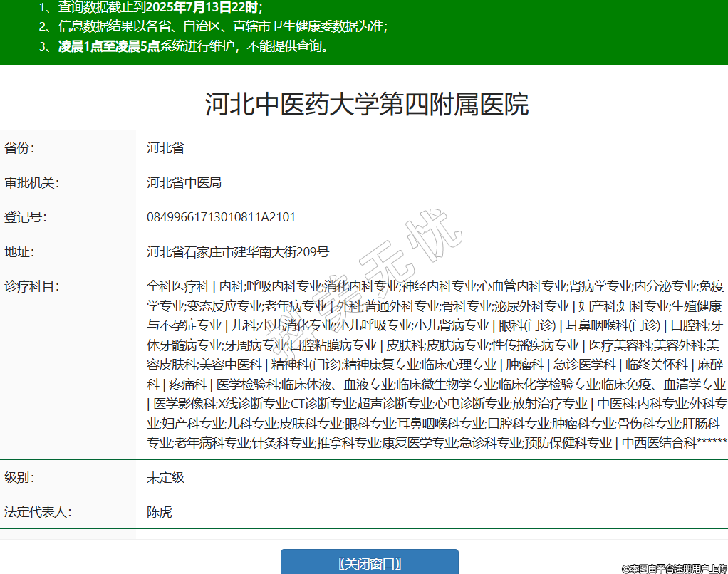 省份:河北省審批機(jī)關(guān):河北省中醫(yī)局登記號(hào):08499661713010811A2101地址:河北省石家莊市建華南大街209號(hào)診療科目:全科醫(yī)療科 | 內(nèi)科;呼吸內(nèi)科專(zhuān)業(yè);消化內(nèi)科專(zhuān)業(yè);神經(jīng)內(nèi)科專(zhuān)業(yè);心血管內(nèi)科專(zhuān)業(yè);腎病學(xué)專(zhuān)業(yè);內(nèi)分泌專(zhuān)業(yè);免疫學(xué)專(zhuān)業(yè);變態(tài)反應(yīng)專(zhuān)業(yè);老年病專(zhuān)業(yè) | 外科;普通外科專(zhuān)業(yè);骨科專(zhuān)業(yè);泌尿外科專(zhuān)業(yè) | 婦產(chǎn)科;婦科專(zhuān)業(yè);生殖健康與不孕癥專(zhuān)業(yè) | 兒科;小兒消化專(zhuān)業(yè);小兒呼吸專(zhuān)業(yè);小兒腎病專(zhuān)業(yè) | 眼科(門(mén)診) | 耳鼻咽喉科(門(mén)診) | 口腔科;牙體牙髓病專(zhuān)業(yè);牙周病專(zhuān)業(yè);口腔粘膜病專(zhuān)業(yè) | 皮膚科;皮膚病專(zhuān)業(yè);性傳播疾病專(zhuān)業(yè) | 醫(yī)療美容科;美容外科;美容皮膚科;美容中醫(yī)科 | 精神科(門(mén)診);精神康復(fù)專(zhuān)業(yè);臨床心理專(zhuān)業(yè) | 腫瘤科 | 急診醫(yī)學(xué)科 | 臨終關(guān)懷科 | 麻醉科 | 疼痛科 | 醫(yī)學(xué)檢驗(yàn)科;臨床體液、血液專(zhuān)業(yè);臨床微生物學(xué)專(zhuān)業(yè);臨床化學(xué)檢驗(yàn)專(zhuān)業(yè);臨床免疫、血清學(xué)專(zhuān)業(yè) | 醫(yī)學(xué)影像科;X線(xiàn)診斷專(zhuān)業(yè);CT診斷專(zhuān)業(yè);超聲診斷專(zhuān)業(yè);心電診斷專(zhuān)業(yè);放射治療專(zhuān)業(yè) | 中醫(yī)科;內(nèi)科專(zhuān)業(yè);外科專(zhuān)業(yè);婦產(chǎn)科專(zhuān)業(yè);兒科專(zhuān)業(yè);皮膚科專(zhuān)業(yè);眼科專(zhuān)業(yè);耳鼻咽喉科專(zhuān)業(yè);口腔科專(zhuān)業(yè);腫瘤科專(zhuān)業(yè);骨傷科專(zhuān)業(yè);肛腸科專(zhuān)業(yè);老年病科專(zhuān)業(yè);針灸科專(zhuān)業(yè);推拿科專(zhuān)業(yè);康復(fù)醫(yī)學(xué)專(zhuān)業(yè);急診科專(zhuān)業(yè);預(yù)防保健科專(zhuān)業(yè) | 中西醫(yī)結(jié)合科******級(jí)別:未定級(jí)法定代表人:陳虎主要負(fù)責(zé)人:執(zhí)業(yè)許可證有效期:2022/06/16 -至- 2030/03/22 -