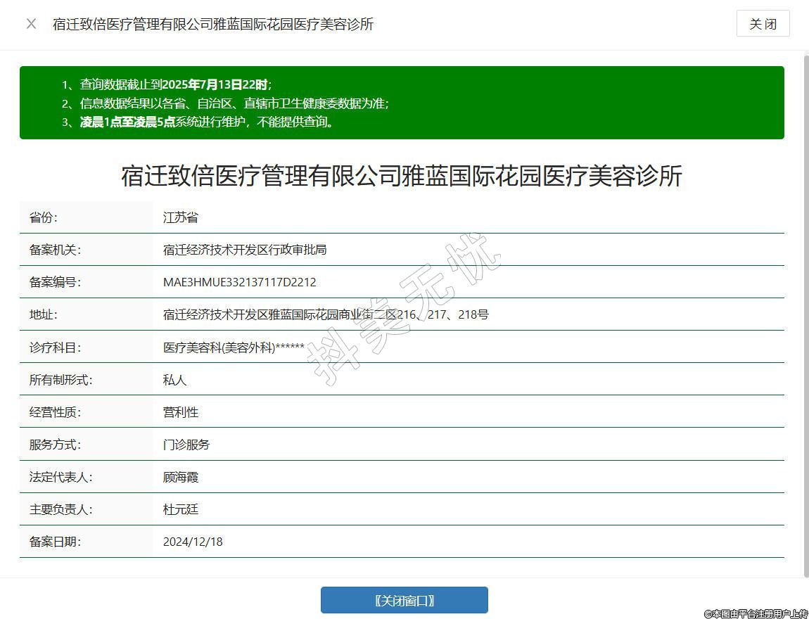 宿遷致倍醫(yī)療管理有限公司雅藍(lán)國(guó)際花園醫(yī)療美容診所