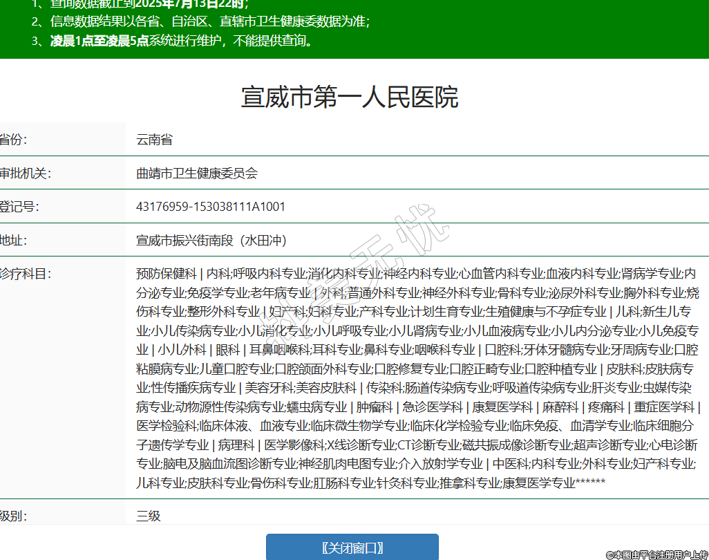 省份:云南省審批機(jī)關(guān):曲靖市衛(wèi)生健康委員會(huì)登記號(hào):43176959-153038111A1001地址:宣威市振興街南段(水田沖)診療科目:預(yù)防保健科 | 內(nèi)科;呼吸內(nèi)科專業(yè);消化內(nèi)科專業(yè);神經(jīng)內(nèi)科專業(yè);心血管內(nèi)科專業(yè);血液內(nèi)科專業(yè);腎病學(xué)專業(yè);內(nèi)分泌專業(yè);免疫學(xué)專業(yè);老年病專業(yè) | 外科;普通外科專業(yè);神經(jīng)外科專業(yè);骨科專業(yè);泌尿外科專業(yè);胸外科專業(yè);燒傷科專業(yè);整形外科專業(yè) | 婦產(chǎn)科;婦科專業(yè);產(chǎn)科專業(yè);計(jì)劃生育專業(yè);生殖健康與不孕癥專業(yè) | 兒科;新生兒專業(yè);小兒傳染病專業(yè);小兒消化專業(yè);小兒呼吸專業(yè);小兒腎病專業(yè);小兒血液病專業(yè);小兒內(nèi)分泌專業(yè);小兒免疫專業(yè) | 小兒外科 | 眼科 | 耳鼻咽喉科;耳科專業(yè);鼻科專業(yè);咽喉科專業(yè) | 口腔科;牙體牙髓病專業(yè);牙周病專業(yè);口腔粘膜病專業(yè);兒童口腔專業(yè);口腔頜面外科專業(yè);口腔修復(fù)專業(yè);口腔正畸專業(yè);口腔種植專業(yè) | 皮膚科;皮膚病專業(yè);性傳播疾病專業(yè) | 美容牙科;美容皮膚科 | 傳染科;腸道傳染病專業(yè);呼吸道傳染病專業(yè);肝炎專業(yè);蟲媒傳染病專業(yè);動(dòng)物源性傳染病專業(yè);蠕蟲病專業(yè) | 腫瘤科 | 急診醫(yī)學(xué)科 | 康復(fù)醫(yī)學(xué)科 | 麻醉科 | 疼痛科 | 重癥醫(yī)學(xué)科 | 醫(yī)學(xué)檢驗(yàn)科;臨床體液、血液專業(yè);臨床微生物學(xué)專業(yè);臨床化學(xué)檢驗(yàn)專業(yè);臨床免疫、血清學(xué)專業(yè);臨床細(xì)胞分子遺傳學(xué)專業(yè) | 病理科 | 醫(yī)學(xué)影像科;X線診斷專業(yè);CT診斷專業(yè);磁共振成像診斷專業(yè);超聲診斷專業(yè);心電診斷專業(yè);腦電及腦血流圖診斷專業(yè);神經(jīng)肌肉電圖專業(yè);介入放射學(xué)專業(yè) | 中醫(yī)科;內(nèi)科專業(yè);外科專業(yè);婦產(chǎn)科專業(yè);兒科專業(yè);皮膚科專業(yè);骨傷科專業(yè);肛腸科專業(yè);針灸科專業(yè);推拿科專業(yè);康復(fù)醫(yī)學(xué)專業(yè)******級(jí)別:三級(jí)法定代表人:薛武憲主要負(fù)責(zé)人:薛武憲執(zhí)業(yè)許可證有效期:2020/04/16 -至- 2035/04/15 -