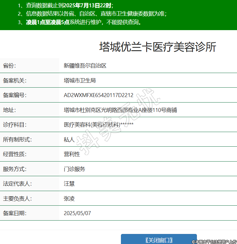 塔城優(yōu)蘭卡醫(yī)療美容診所,診療科目:醫(yī)療美容科(美容皮膚科)******