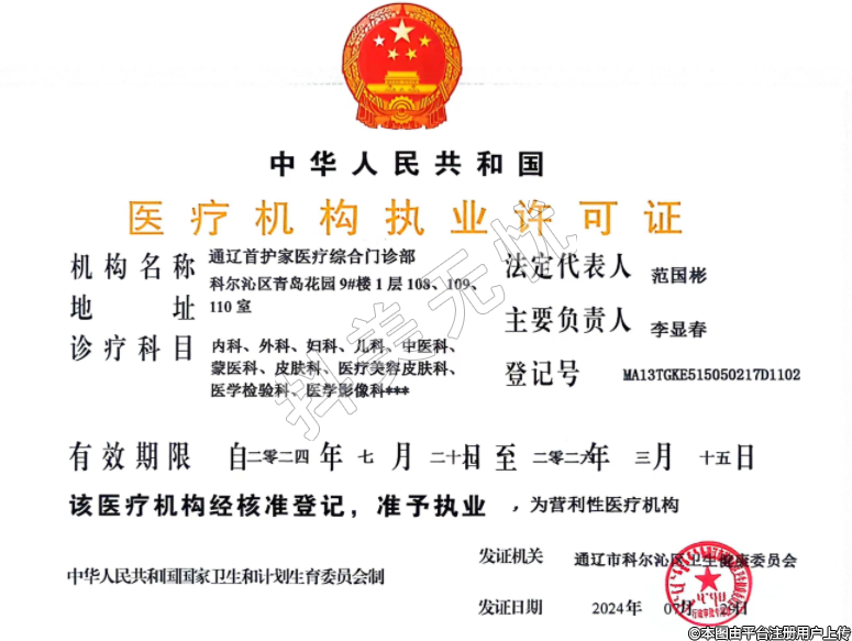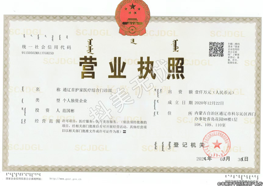 發(fā)證機關(guān):通遼科爾沁區(qū)衛(wèi)生健康委員會