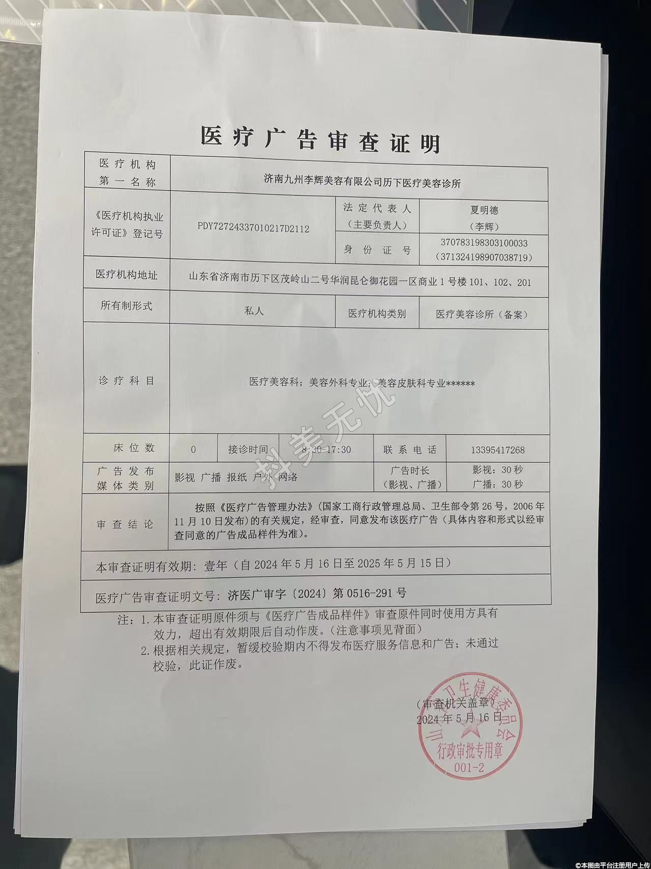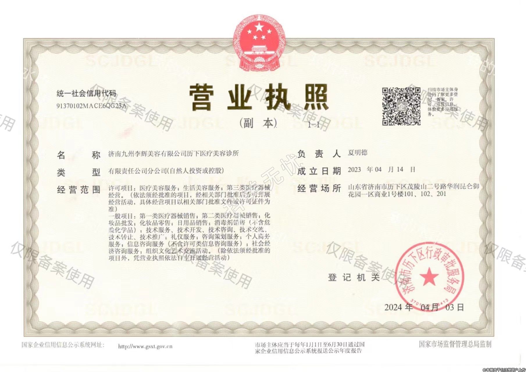 名稱:濟(jì)南九州李輝美容有限公司歷下醫(yī)療美容診所