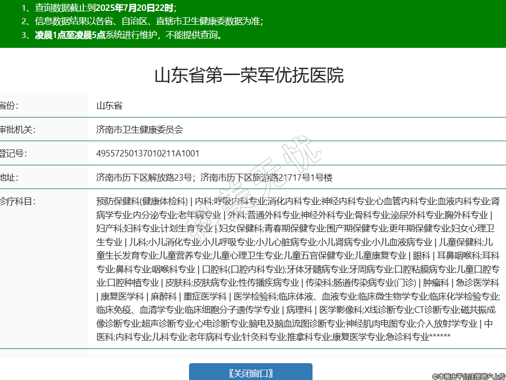 省份:山東省審批機關(guān):濟南市衛(wèi)生健康委員會登記號:49557250137010211A1001地址:濟南市歷下區(qū)解放路23號;濟南市歷下區(qū)旅游路21717號1號樓診療科目:預(yù)防保健科(健康體檢科) | 內(nèi)科;呼吸內(nèi)科專業(yè);消化內(nèi)科專業(yè);神經(jīng)內(nèi)科專業(yè);心血管內(nèi)科專業(yè);血液內(nèi)科專業(yè);腎病學專業(yè);內(nèi)分泌專業(yè);老年病專業(yè) | 外科;普通外科專業(yè);神經(jīng)外科專業(yè);骨科專業(yè);泌尿外科專業(yè);胸外科專業(yè) | 婦產(chǎn)科;婦科專業(yè);計劃生育專業(yè) | 婦女保健科;青春期保健專業(yè);圍產(chǎn)期保健專業(yè);更年期保健專業(yè);婦女心理衛(wèi)生專業(yè) | 兒科;小兒消化專業(yè);小兒呼吸專業(yè);小兒心臟病專業(yè);小兒腎病專業(yè);小兒血液病專業(yè) | 兒童保健科;兒童生長發(fā)育專業(yè);兒童營養(yǎng)專業(yè);兒童心理衛(wèi)生專業(yè);兒童五官保健專業(yè);兒童康復專業(yè) | 眼科 | 耳鼻咽喉科;耳科專業(yè);鼻科專業(yè);咽喉科專業(yè) | 口腔科(口腔內(nèi)科專業(yè));牙體牙髓病專業(yè);牙周病專業(yè);口腔粘膜病專業(yè);兒童口腔專業(yè);口腔種植專業(yè) | 皮膚科;皮膚病專業(yè);性傳播疾病專業(yè) | 傳染科;腸道傳染病專業(yè)(門診) | 腫瘤科 | 急診醫(yī)學科 | 康復醫(yī)學科 | 麻醉科 | 重癥醫(yī)學科 | 醫(yī)學檢驗科;臨床體液、血液專業(yè);臨床微生物學專業(yè);臨床化學檢驗專業(yè);臨床免疫、血清學專業(yè);臨床細胞分子遺傳學專業(yè) | 病理科 | 醫(yī)學影像科;X線診斷專業(yè);CT診斷專業(yè);磁共振成像診斷專業(yè);超聲診斷專業(yè);心電診斷專業(yè);腦電及腦血流圖診斷專業(yè);神經(jīng)肌肉電圖專業(yè);介入放射學專業(yè) | 中醫(yī)科;內(nèi)科專業(yè);兒科專業(yè);老年病科專業(yè);針灸科專業(yè);推拿科專業(yè);康復醫(yī)學專業(yè);急診科專業(yè)******級別:二級法定代表人:孫士營主要負責人:孫士營執(zhí)業(yè)許可證有效期:2025/03/11 -至- 2033/10/23 -