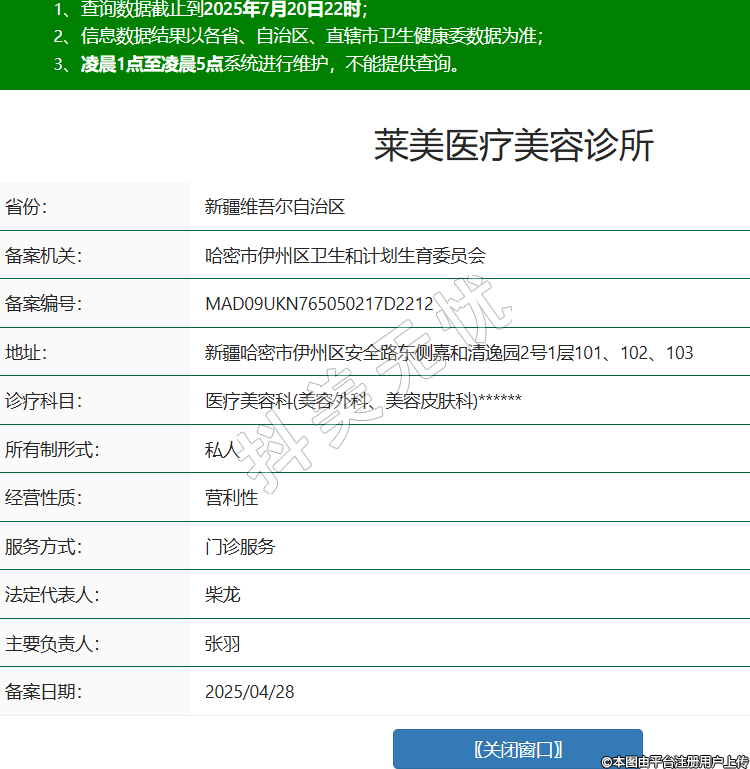省份:新疆維吾爾自治區(qū)備案機關(guān):哈密市伊州區(qū)衛(wèi)生和計劃生育委員會備案編號:MAD09UKN765050217D2212地址:新疆哈密市伊州區(qū)安全路東側(cè)嘉和清逸園2號1層101、102、103診療科目:醫(yī)療美容科(美容外科、美容皮膚科)******所有制形式:私人經(jīng)營性質(zhì):營利性服務(wù)方式:門診服務(wù)法定代表人:柴龍主要負責人:張羽備案日期:2025/04/28 -