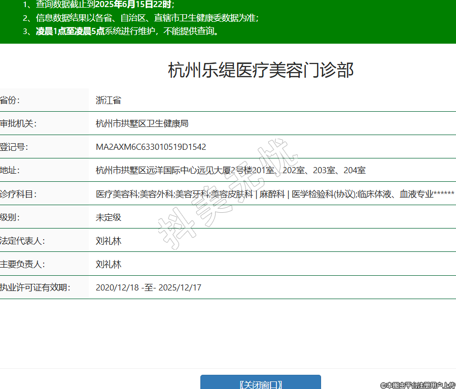 省份:浙江省審批機(jī)關(guān):杭州市拱墅區(qū)衛(wèi)生健康局登記號:MA2AXM6C633010519D1542地址:杭州市拱墅區(qū)遠(yuǎn)洋國際中心遠(yuǎn)見大廈2號樓201室、202室、203室、204室診療科目:醫(yī)療美容科;美容外科;美容牙科;美容皮膚科 | 麻醉科 | 醫(yī)學(xué)檢驗(yàn)科(協(xié)議);臨床體液、血液專業(yè)******級別:未定級法定代表人:劉禮林主要負(fù)責(zé)人:劉禮林執(zhí)業(yè)許可證有效期:2020/12/18 -至- 2025/12/17 -