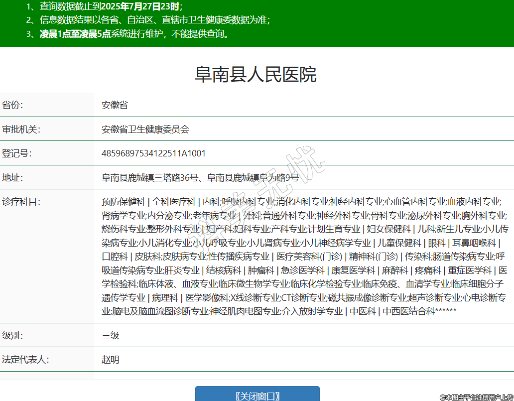 省份:安徽省審批機(jī)關(guān):安徽省衛(wèi)生健康委員會(huì)登記號(hào):48596897534122511A1001地址:阜南縣鹿城鎮(zhèn)三塔路36號(hào)、阜南縣鹿城鎮(zhèn)阜為路9號(hào)診療科目:預(yù)防保健科 | 全科醫(yī)療科 | 內(nèi)科;呼吸內(nèi)科專業(yè);消化內(nèi)科專業(yè);神經(jīng)內(nèi)科專業(yè);心血管內(nèi)科專業(yè);血液內(nèi)科專業(yè);腎病學(xué)專業(yè);內(nèi)分泌專業(yè);老年病專業(yè) | 外科;普通外科專業(yè);神經(jīng)外科專業(yè);骨科專業(yè);泌尿外科專業(yè);胸外科專業(yè);燒傷科專業(yè);整形外科專業(yè) | 婦產(chǎn)科;婦科專業(yè);產(chǎn)科專業(yè);計(jì)劃生育專業(yè) | 婦女保健科 | 兒科;新生兒專業(yè);小兒傳染病專業(yè);小兒消化專業(yè);小兒呼吸專業(yè);小兒腎病專業(yè);小兒神經(jīng)病學(xué)專業(yè) | 兒童保健科 | 眼科 | 耳鼻咽喉科 | 口腔科 | 皮膚科;皮膚病專業(yè);性傳播疾病專業(yè) | 醫(yī)療美容科(門診) | 精神科(門診) | 傳染科;腸道傳染病專業(yè);呼吸道傳染病專業(yè);肝炎專業(yè) | 結(jié)核病科 | 腫瘤科 | 急診醫(yī)學(xué)科 | 康復(fù)醫(yī)學(xué)科 | 麻醉科 | 疼痛科 | 重癥醫(yī)學(xué)科 | 醫(yī)學(xué)檢驗(yàn)科;臨床體液、血液專業(yè);臨床微生物學(xué)專業(yè);臨床化學(xué)檢驗(yàn)專業(yè);臨床免疫、血清學(xué)專業(yè);臨床細(xì)胞分子遺傳學(xué)專業(yè) | 病理科 | 醫(yī)學(xué)影像科;X線診斷專業(yè);CT診斷專業(yè);磁共振成像診斷專業(yè);超聲診斷專業(yè);心電診斷專業(yè);腦電及腦血流圖診斷專業(yè);神經(jīng)肌肉電圖專業(yè);介入放射學(xué)專業(yè) | 中醫(yī)科 | 中西醫(yī)結(jié)合科******級(jí)別:三級(jí)法定代表人:趙明主要負(fù)責(zé)人:趙明執(zhí)業(yè)許可證有效期:2020/04/21 -至- 2035/04/20 -