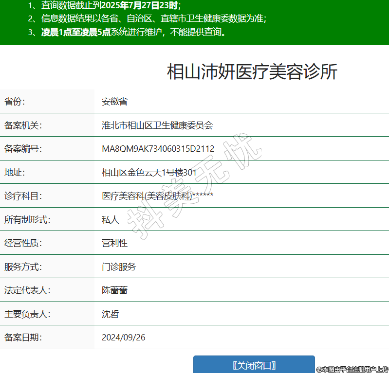 省份:安徽省備案機關(guān):淮北市相山區(qū)衛(wèi)生健康委員會備案編號:MA8QM9AK734060315D2112地址:相山區(qū)金色云天1號樓301診療科目:醫(yī)療美容科(美容皮膚科)******所有制形式:私人經(jīng)營性質(zhì):營利性服務(wù)方式:門診服務(wù)法定代表人:陳薔薔主要負(fù)責(zé)人:沈哲備案日期:2024/09/26 -