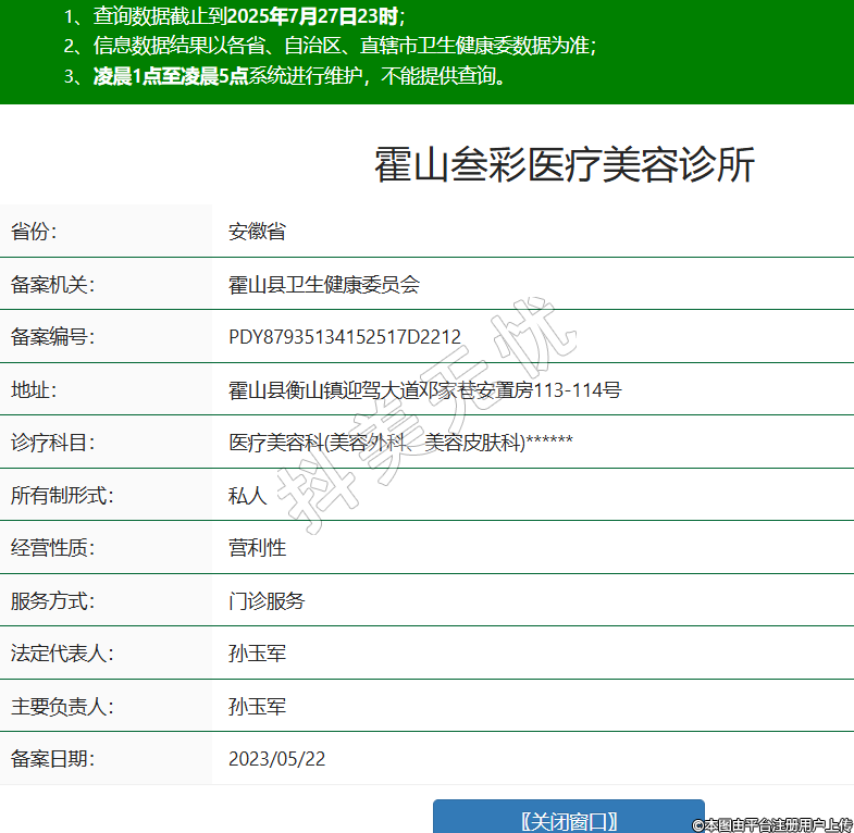 省份:安徽省備案機(jī)關(guān):霍山縣衛(wèi)生健康委員會(huì)備案編號(hào):PDY87935134152517D2212地址:霍山縣衡山鎮(zhèn)迎駕大道鄧家巷安置房113-114號(hào)診療科目:醫(yī)療美容科(美容外科、美容皮膚科)******所有制形式:私人經(jīng)營性質(zhì):營利性服務(wù)方式:門診服務(wù)法定代表人:孫玉軍主要負(fù)責(zé)人:孫玉軍備案日期:2023/05/22 -