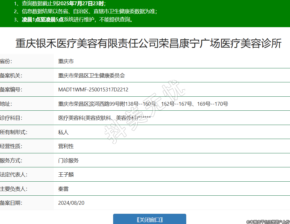 重慶銀禾醫(yī)療美容有限責任公司榮昌康寧廣場醫(yī)療美容診所