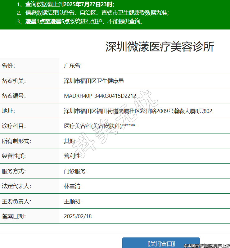 省份:廣東省備案機關(guān):深圳市福田區(qū)衛(wèi)生健康局備案編號:MADRH40P-344030415D2212地址:深圳市福田區(qū)福田街道崗廈社區(qū)彩田路2009號瀚森大廈8層802診療科目:醫(yī)療美容科(美容皮膚科)******所有制形式:其他經(jīng)營性質(zhì):營利性服務(wù)方式:門診服務(wù)法定代表人:林雪清主要負(fù)責(zé)人:王順初備案日期:2025/02/18 -