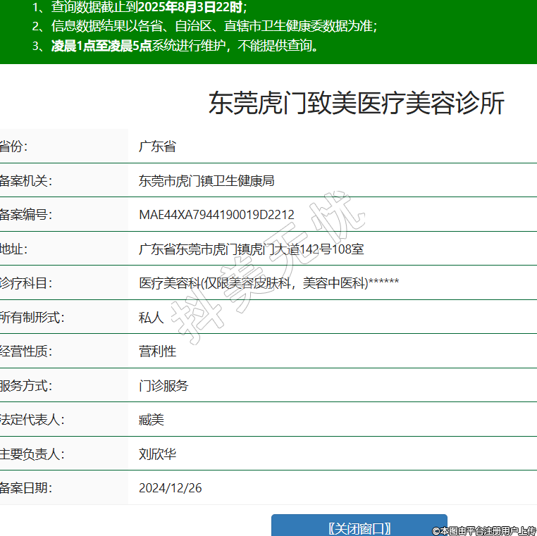 東莞虎門致美醫(yī)療美容診所,診療科目:醫(yī)療美容科(僅限美容皮膚科,美容中醫(yī)科)******