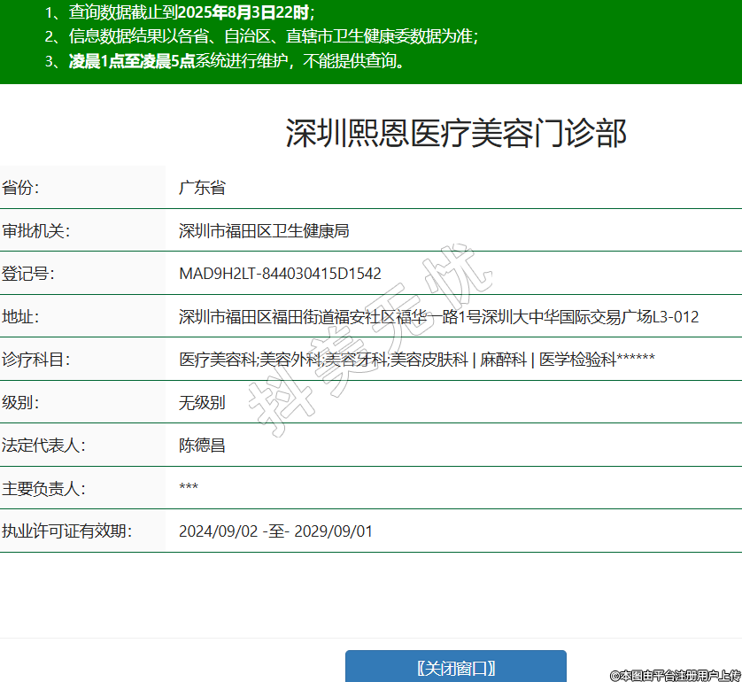 省份:廣東省審批機(jī)關(guān):深圳市福田區(qū)衛(wèi)生健康局登記號:MAD9H2LT-844030415D1542地址:深圳市福田區(qū)福田街道福安社區(qū)福華一路1號深圳大中華國際交易廣場L3-012診療科目:醫(yī)療美容科;美容外科;美容牙科;美容皮膚科 | 麻醉科 | 醫(yī)學(xué)檢驗(yàn)科******級別:無級別法定代表人:陳德昌主要負(fù)責(zé)人:***執(zhí)業(yè)許可證有效期:2024/09/02 -至- 2029/09/01 -