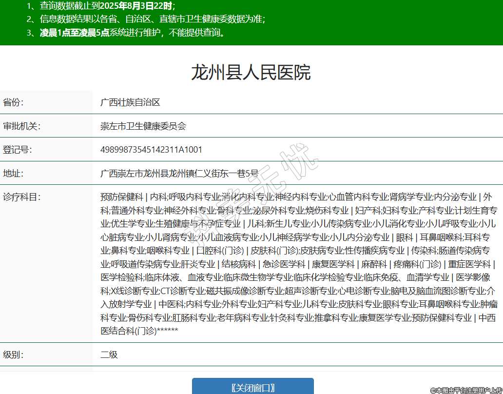 省份:廣西壯族自治區(qū)審批機(jī)關(guān):崇左市衛(wèi)生健康委員會(huì)登記號(hào):49899873545142311A1001地址:廣西崇左市龍州縣龍州鎮(zhèn)仁義街東一巷5號(hào)診療科目:預(yù)防保健科 | 內(nèi)科;呼吸內(nèi)科專業(yè);消化內(nèi)科專業(yè);神經(jīng)內(nèi)科專業(yè);心血管內(nèi)科專業(yè);腎病學(xué)專業(yè);內(nèi)分泌專業(yè) | 外科;普通外科專業(yè);神經(jīng)外科專業(yè);骨科專業(yè);泌尿外科專業(yè);燒傷科專業(yè) | 婦產(chǎn)科;婦科專業(yè);產(chǎn)科專業(yè);計(jì)劃生育專業(yè);優(yōu)生學(xué)專業(yè);生殖健康與不孕癥專業(yè) | 兒科;新生兒專業(yè);小兒傳染病專業(yè);小兒消化專業(yè);小兒呼吸專業(yè);小兒心臟病專業(yè);小兒腎病專業(yè);小兒血液病專業(yè);小兒神經(jīng)病學(xué)專業(yè);小兒內(nèi)分泌專業(yè) | 眼科 | 耳鼻咽喉科;耳科專業(yè);鼻科專業(yè);咽喉科專業(yè) | 口腔科(門診) | 皮膚科(門診);皮膚病專業(yè);性傳播疾病專業(yè) | 傳染科;腸道傳染病專業(yè);呼吸道傳染病專業(yè);肝炎專業(yè) | 結(jié)核病科 | 急診醫(yī)學(xué)科 | 康復(fù)醫(yī)學(xué)科 | 麻醉科 | 疼痛科(門診) | 重癥醫(yī)學(xué)科 | 醫(yī)學(xué)檢驗(yàn)科;臨床體液、血液專業(yè);臨床微生物學(xué)專業(yè);臨床化學(xué)檢驗(yàn)專業(yè);臨床免疫、血清學(xué)專業(yè) | 醫(yī)學(xué)影像科;X線診斷專業(yè);CT診斷專業(yè);磁共振成像診斷專業(yè);超聲診斷專業(yè);心電診斷專業(yè);腦電及腦血流圖診斷專業(yè);介入放射學(xué)專業(yè) | 中醫(yī)科;內(nèi)科專業(yè);外科專業(yè);婦產(chǎn)科專業(yè);兒科專業(yè);皮膚科專業(yè);眼科專業(yè);耳鼻咽喉科專業(yè);腫瘤科專業(yè);骨傷科專業(yè);肛腸科專業(yè);老年病科專業(yè);針灸科專業(yè);推拿科專業(yè);康復(fù)醫(yī)學(xué)專業(yè);預(yù)防保健科專業(yè) | 中西醫(yī)結(jié)合科(門診)******級(jí)別:二級(jí)法定代表人:蒙忠主要負(fù)責(zé)人:蒙忠執(zhí)業(yè)許可證有效期:2025/04/08 -至- 2032/12/11 -