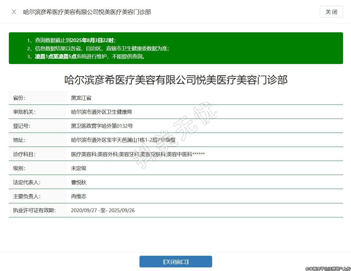 哈爾濱彥希醫(yī)療美容有限公司悅美醫(yī)療美容門診部