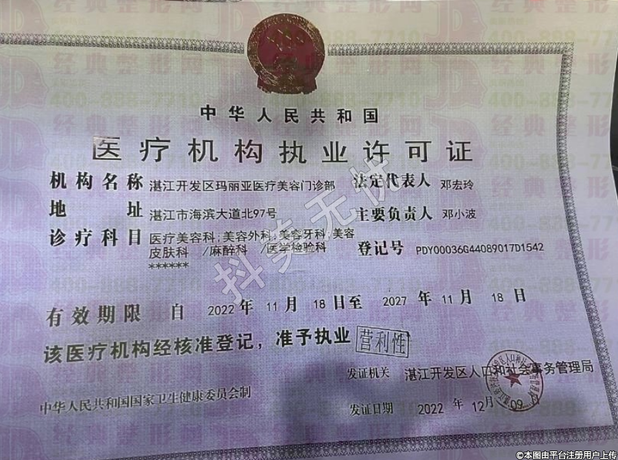 機(jī)構(gòu)名稱:湛江開發(fā)區(qū)瑪麗亞醫(yī)療美容門診部