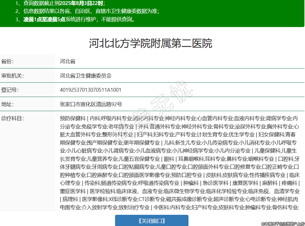 省份:河北省審批機關:河北省衛(wèi)生健康委員會登記號:40192537013070511A1001地址:張家口市宣化區(qū)清遠路92號診療科目:預防保健科 | 內科;呼吸內科專業(yè);消化內科專業(yè);神經(jīng)內科專業(yè);心血管內科專業(yè);血液內科專業(yè);腎病學專業(yè);內分泌專業(yè);免疫學專業(yè);老年病專業(yè) | 外科;普通外科專業(yè);神經(jīng)外科專業(yè);骨科專業(yè);泌尿外科專業(yè);胸外科專業(yè);心臟大血管外科專業(yè);整形外科專業(yè) | 婦產(chǎn)科;婦科專業(yè);產(chǎn)科專業(yè);計劃生育專業(yè);優(yōu)生學專業(yè) | 婦女保健科;青春期保健專業(yè);圍產(chǎn)期保健專業(yè);更年期保健專業(yè) | 兒科;新生兒專業(yè);小兒傳染病專業(yè);小兒消化專業(yè);小兒呼吸專業(yè);小兒心臟病專業(yè);小兒腎病專業(yè);小兒血液病專業(yè);小兒神經(jīng)病學專業(yè);小兒內分泌專業(yè) | 兒童保健科;兒童生長發(fā)育專業(yè);兒童營養(yǎng)專業(yè);兒童五官保健專業(yè) | 眼科 | 耳鼻咽喉科;耳科專業(yè);鼻科專業(yè);咽喉科專業(yè) | 口腔科;牙體牙髓病專業(yè);牙周病專業(yè);口腔粘膜病專業(yè);兒童口腔專業(yè);口腔頜面外科專業(yè);口腔修復專業(yè);口腔正畸專業(yè);口腔種植專業(yè);口腔麻醉專業(yè);口腔頜面醫(yī)學影像專業(yè);預防口腔專業(yè) | 皮膚科;皮膚病專業(yè);性傳播疾病專業(yè) | 臨床心理專業(yè) | 傳染科;腸道傳染病專業(yè);呼吸道傳染病專業(yè) | 腫瘤科 | 急診醫(yī)學科 | 康復醫(yī)學科 | 麻醉科 | 疼痛科 | 重癥醫(yī)學科 | 醫(yī)學檢驗科;臨床體液、血液專業(yè);臨床微生物學專業(yè);臨床化學檢驗專業(yè);臨床免疫、血清學專業(yè) | 病理科 | 醫(yī)學影像科;X線診斷專業(yè);CT診斷專業(yè);磁共振成像診斷專業(yè);超聲診斷專業(yè);心電診斷專業(yè);神經(jīng)肌肉電圖專業(yè);介入放射學專業(yè);放射治療專業(yè) | 中醫(yī)科;內科專業(yè);婦產(chǎn)科專業(yè);皮膚科專業(yè);腫瘤科專業(yè);骨傷科專業(yè);肛腸科專業(yè);老年病科專業(yè);針灸科專業(yè);推拿科專業(yè) | 中西醫(yī)結合科******級別:三級法定代表人:丁英奇主要負責人:執(zhí)業(yè)許可證有效期:2024/04/13 -至- 2029/12/16 -
