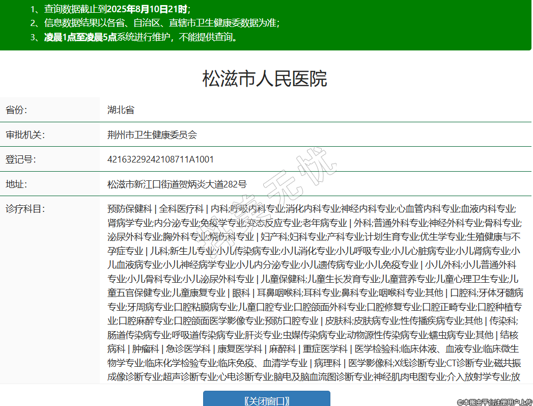 省份:湖北省審批機(jī)關(guān):荊州市衛(wèi)生健康委員會(huì)登記號(hào):42163229242108711A1001地址:松滋市新江口街道賀炳炎大道282號(hào)診療科目:預(yù)防保健科 | 全科醫(yī)療科 | 內(nèi)科;呼吸內(nèi)科專業(yè);消化內(nèi)科專業(yè);神經(jīng)內(nèi)科專業(yè);心血管內(nèi)科專業(yè);血液內(nèi)科專業(yè);腎病學(xué)專業(yè);內(nèi)分泌專業(yè);免疫學(xué)專業(yè);變態(tài)反應(yīng)專業(yè);老年病專業(yè) | 外科;普通外科專業(yè);神經(jīng)外科專業(yè);骨科專業(yè);泌尿外科專業(yè);胸外科專業(yè);燒傷科專業(yè) | 婦產(chǎn)科;婦科專業(yè);產(chǎn)科專業(yè);計(jì)劃生育專業(yè);優(yōu)生學(xué)專業(yè);生殖健康與不孕癥專業(yè) | 兒科;新生兒專業(yè);小兒傳染病專業(yè);小兒消化專業(yè);小兒呼吸專業(yè);小兒心臟病專業(yè);小兒腎病專業(yè);小兒血液病專業(yè);小兒神經(jīng)病學(xué)專業(yè);小兒內(nèi)分泌專業(yè);小兒遺傳病專業(yè);小兒免疫專業(yè) | 小兒外科;小兒普通外科專業(yè);小兒骨科專業(yè);小兒泌尿外科專業(yè) | 兒童保健科;兒童生長(zhǎng)發(fā)育專業(yè);兒童營(yíng)養(yǎng)專業(yè);兒童心理衛(wèi)生專業(yè);兒童五官保健專業(yè);兒童康復(fù)專業(yè) | 眼科 | 耳鼻咽喉科;耳科專業(yè);鼻科專業(yè);咽喉科專業(yè);其他 | 口腔科;牙體牙髓病專業(yè);牙周病專業(yè);口腔粘膜病專業(yè);兒童口腔專業(yè);口腔頜面外科專業(yè);口腔修復(fù)專業(yè);口腔正畸專業(yè);口腔種植專業(yè);口腔麻醉專業(yè);口腔頜面醫(yī)學(xué)影像專業(yè);預(yù)防口腔專業(yè) | 皮膚科;皮膚病專業(yè);性傳播疾病專業(yè);其他 | 傳染科;腸道傳染病專業(yè);呼吸道傳染病專業(yè);肝炎專業(yè);蟲媒傳染病專業(yè);動(dòng)物源性傳染病專業(yè);蠕蟲病專業(yè);其他 | 結(jié)核病科 | 腫瘤科 | 急診醫(yī)學(xué)科 | 康復(fù)醫(yī)學(xué)科 | 麻醉科 | 重癥醫(yī)學(xué)科 | 醫(yī)學(xué)檢驗(yàn)科;臨床體液、血液專業(yè);臨床微生物學(xué)專業(yè);臨床化學(xué)檢驗(yàn)專業(yè);臨床免疫、血清學(xué)專業(yè) | 病理科 | 醫(yī)學(xué)影像科;X線診斷專業(yè);CT診斷專業(yè);磁共振成像診斷專業(yè);超聲診斷專業(yè);心電診斷專業(yè);腦電及腦血流圖診斷專業(yè);神經(jīng)肌肉電圖專業(yè);介入放射學(xué)專業(yè);放射治療專業(yè) | 中醫(yī)科;肛腸科專業(yè);針灸科專業(yè);推拿科專業(yè);康復(fù)醫(yī)學(xué)專業(yè)******級(jí)別:三級(jí)法定代表人:毛華平主要負(fù)責(zé)人:毛華平執(zhí)業(yè)許可證有效期:2022/10/25 -至- 2037/10/24 -