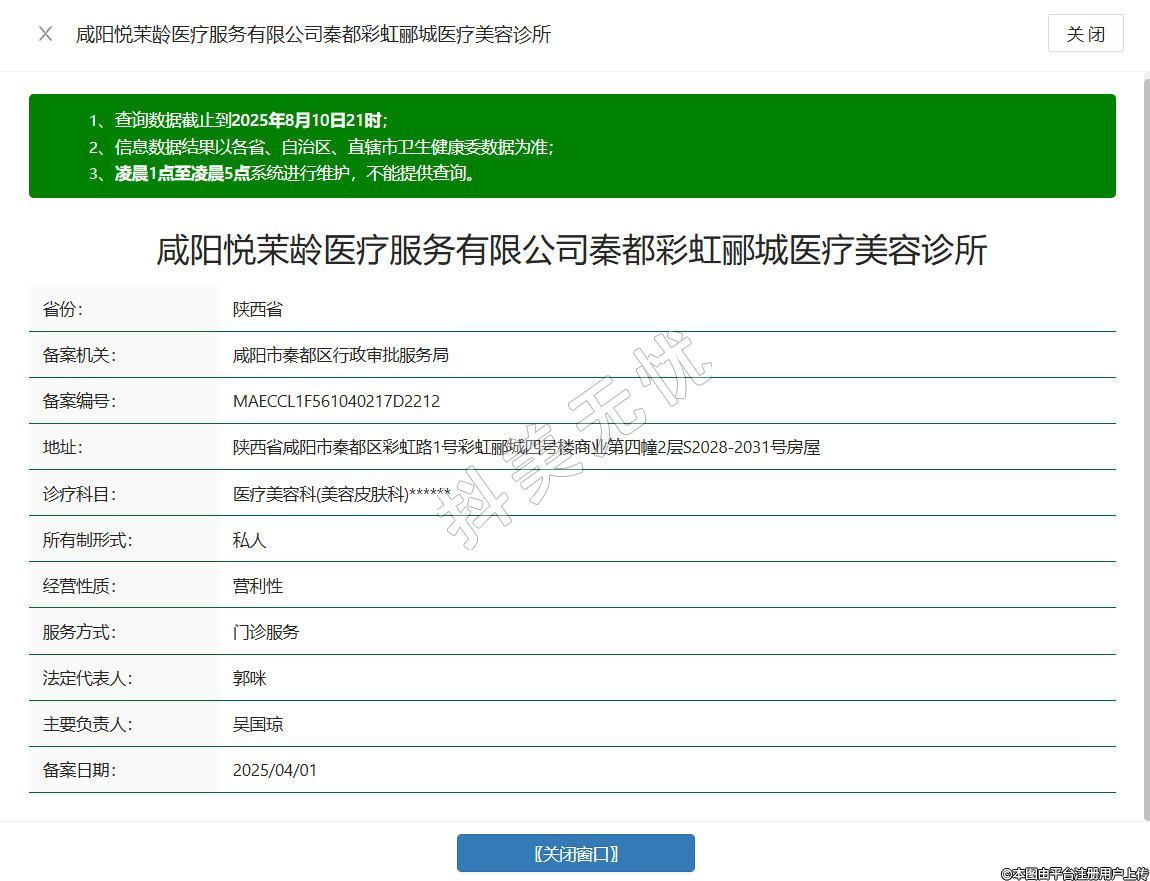 咸陽悅茉齡醫(yī)療服務有限公司秦都彩虹酈城醫(yī)療美容診所