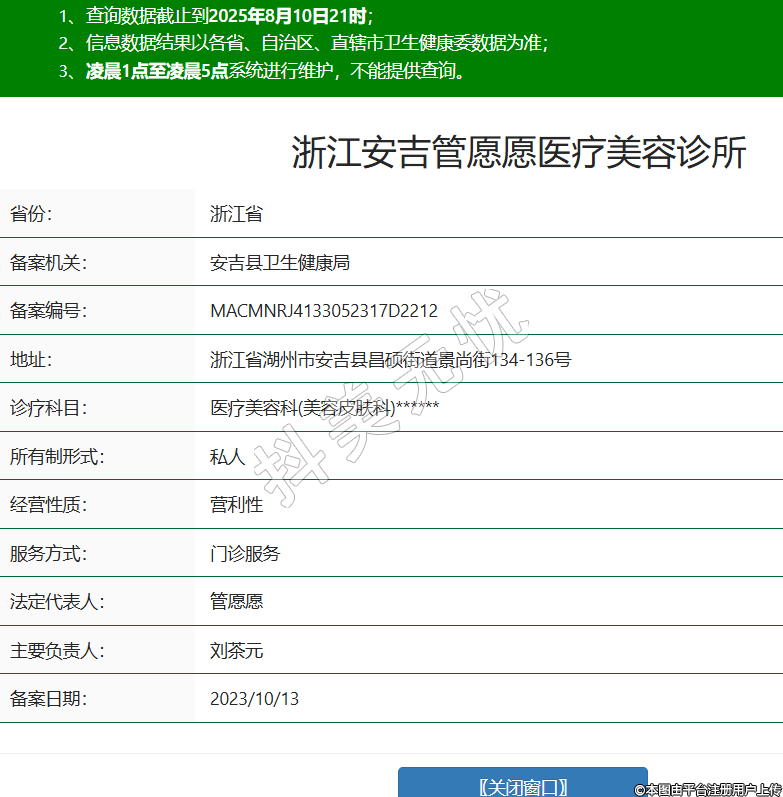 浙江安吉管愿愿醫(yī)療美容診所,診療科目:醫(yī)療美容科(美容皮膚科)******