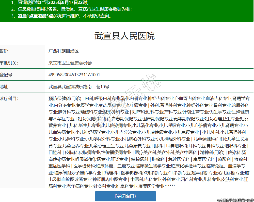 省份:廣西壯族自治區(qū)審批機(jī)關(guān):來(lái)賓市衛(wèi)生健康委員會(huì)登記號(hào):49905820045132311A1001地址:武宣縣武宣鎮(zhèn)城東路南二巷10號(hào)診療科目:預(yù)防保健科(門(mén)診) | 內(nèi)科;呼吸內(nèi)科專(zhuān)業(yè);消化內(nèi)科專(zhuān)業(yè);神經(jīng)內(nèi)科專(zhuān)業(yè);心血管內(nèi)科專(zhuān)業(yè);血液內(nèi)科專(zhuān)業(yè);腎病學(xué)專(zhuān)業(yè);內(nèi)分泌專(zhuān)業(yè);免疫學(xué)專(zhuān)業(yè);變態(tài)反應(yīng)專(zhuān)業(yè);老年病專(zhuān)業(yè) | 外科;普通外科專(zhuān)業(yè);神經(jīng)外科專(zhuān)業(yè);骨科專(zhuān)業(yè);泌尿外科專(zhuān)業(yè);胸外科專(zhuān)業(yè);燒傷科專(zhuān)業(yè);整形外科專(zhuān)業(yè) | 婦產(chǎn)科;婦科專(zhuān)業(yè);產(chǎn)科專(zhuān)業(yè);計(jì)劃生育專(zhuān)業(yè);優(yōu)生學(xué)專(zhuān)業(yè);生殖健康與不孕癥專(zhuān)業(yè) | 婦女保健科(門(mén)診);青春期保健專(zhuān)業(yè);圍產(chǎn)期保健專(zhuān)業(yè);更年期保健專(zhuān)業(yè);婦女心理衛(wèi)生專(zhuān)業(yè);婦女營(yíng)養(yǎng)專(zhuān)業(yè) | 兒科;新生兒專(zhuān)業(yè);小兒傳染病專(zhuān)業(yè);小兒消化專(zhuān)業(yè);小兒呼吸專(zhuān)業(yè);小兒心臟病專(zhuān)業(yè);小兒腎病專(zhuān)業(yè);小兒血液病專(zhuān)業(yè);小兒神經(jīng)病學(xué)專(zhuān)業(yè);小兒內(nèi)分泌專(zhuān)業(yè);小兒遺傳病專(zhuān)業(yè);小兒免疫專(zhuān)業(yè) | 小兒外科;小兒普通外科專(zhuān)業(yè);小兒骨科專(zhuān)業(yè);小兒泌尿外科專(zhuān)業(yè);小兒胸心外科專(zhuān)業(yè);小兒神經(jīng)外科專(zhuān)業(yè) | 兒童保健科(門(mén)診);兒童生長(zhǎng)發(fā)育專(zhuān)業(yè);兒童營(yíng)養(yǎng)專(zhuān)業(yè);兒童心理衛(wèi)生專(zhuān)業(yè);兒童康復(fù)專(zhuān)業(yè) | 眼科 | 耳鼻咽喉科;耳科專(zhuān)業(yè);鼻科專(zhuān)業(yè);咽喉科專(zhuān)業(yè) | 口腔科 | 皮膚科;皮膚病專(zhuān)業(yè);性傳播疾病專(zhuān)業(yè) | 醫(yī)療美容科;美容外科;美容中醫(yī)科 | 精神科(門(mén)診) | 傳染科;腸道傳染病專(zhuān)業(yè);呼吸道傳染病專(zhuān)業(yè);肝炎專(zhuān)業(yè) | 結(jié)核病科 | 腫瘤科 | 急診醫(yī)學(xué)科 | 康復(fù)醫(yī)學(xué)科 | 麻醉科 | 疼痛科 | 重癥醫(yī)學(xué)科 | 醫(yī)學(xué)檢驗(yàn)科;臨床體液、血液專(zhuān)業(yè);臨床微生物學(xué)專(zhuān)業(yè);臨床化學(xué)檢驗(yàn)專(zhuān)業(yè);臨床免疫、血清學(xué)專(zhuān)業(yè);臨床細(xì)胞分子遺傳學(xué)專(zhuān)業(yè) | 病理科 | 醫(yī)學(xué)影像科;X線診斷專(zhuān)業(yè);CT診斷專(zhuān)業(yè);超聲診斷專(zhuān)業(yè);心電診斷專(zhuān)業(yè);腦電及腦血流圖診斷專(zhuān)業(yè);神經(jīng)肌肉電圖專(zhuān)業(yè) | 中醫(yī)科;內(nèi)科專(zhuān)業(yè);外科專(zhuān)業(yè);婦產(chǎn)科專(zhuān)業(yè);兒科專(zhuān)業(yè);皮膚科專(zhuān)業(yè);肛腸科專(zhuān)業(yè);老年病科專(zhuān)業(yè);針灸科專(zhuān)業(yè);推拿科專(zhuān)業(yè);康復(fù)醫(yī)學(xué)專(zhuān)業(yè)******級(jí)別:二級(jí)法定代表人:庾佳南主要負(fù)責(zé)人:庾佳南執(zhí)業(yè)許可證有效期:2019/03/02 -至- 2034/03/01 -