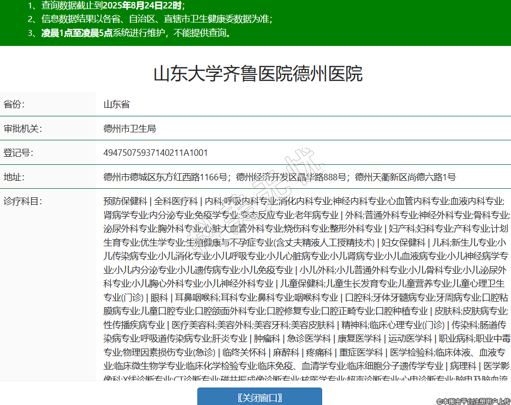 省份:山東省審批機(jī)關(guān):德州市衛(wèi)生局登記號(hào):49475075937140211A1001地址:德州市德城區(qū)東方紅西路1166號(hào);德州經(jīng)濟(jì)開(kāi)發(fā)區(qū)晶華路888號(hào);德州天衢新區(qū)尚德六路1號(hào)診療科目:預(yù)防保健科 | 全科醫(yī)療科 | 內(nèi)科;呼吸內(nèi)科專(zhuān)業(yè);消化內(nèi)科專(zhuān)業(yè);神經(jīng)內(nèi)科專(zhuān)業(yè);心血管內(nèi)科專(zhuān)業(yè);血液內(nèi)科專(zhuān)業(yè);腎病學(xué)專(zhuān)業(yè);內(nèi)分泌專(zhuān)業(yè);免疫學(xué)專(zhuān)業(yè);變態(tài)反應(yīng)專(zhuān)業(yè);老年病專(zhuān)業(yè) | 外科;普通外科專(zhuān)業(yè);神經(jīng)外科專(zhuān)業(yè);骨科專(zhuān)業(yè);泌尿外科專(zhuān)業(yè);胸外科專(zhuān)業(yè);心臟大血管外科專(zhuān)業(yè);燒傷科專(zhuān)業(yè);整形外科專(zhuān)業(yè) | 婦產(chǎn)科;婦科專(zhuān)業(yè);產(chǎn)科專(zhuān)業(yè);計(jì)劃生育專(zhuān)業(yè);優(yōu)生學(xué)專(zhuān)業(yè);生殖健康與不孕癥專(zhuān)業(yè)(含丈夫精液人工授精技術(shù)) | 婦女保健科 | 兒科;新生兒專(zhuān)業(yè);小兒傳染病專(zhuān)業(yè);小兒消化專(zhuān)業(yè);小兒呼吸專(zhuān)業(yè);小兒心臟病專(zhuān)業(yè);小兒腎病專(zhuān)業(yè);小兒血液病專(zhuān)業(yè);小兒神經(jīng)病學(xué)專(zhuān)業(yè);小兒內(nèi)分泌專(zhuān)業(yè);小兒遺傳病專(zhuān)業(yè);小兒免疫專(zhuān)業(yè) | 小兒外科;小兒普通外科專(zhuān)業(yè);小兒骨科專(zhuān)業(yè);小兒泌尿外科專(zhuān)業(yè);小兒胸心外科專(zhuān)業(yè);小兒神經(jīng)外科專(zhuān)業(yè) | 兒童保健科;兒童生長(zhǎng)發(fā)育專(zhuān)業(yè);兒童營(yíng)養(yǎng)專(zhuān)業(yè);兒童心理衛(wèi)生專(zhuān)業(yè)(門(mén)診) | 眼科 | 耳鼻咽喉科;耳科專(zhuān)業(yè);鼻科專(zhuān)業(yè);咽喉科專(zhuān)業(yè) | 口腔科;牙體牙髓病專(zhuān)業(yè);牙周病專(zhuān)業(yè);口腔粘膜病專(zhuān)業(yè);兒童口腔專(zhuān)業(yè);口腔頜面外科專(zhuān)業(yè);口腔修復(fù)專(zhuān)業(yè);口腔正畸專(zhuān)業(yè);口腔種植專(zhuān)業(yè) | 皮膚科;皮膚病專(zhuān)業(yè);性傳播疾病專(zhuān)業(yè) | 醫(yī)療美容科;美容外科;美容牙科;美容皮膚科 | 精神科;臨床心理專(zhuān)業(yè)(門(mén)診) | 傳染科;腸道傳染病專(zhuān)業(yè);呼吸道傳染病專(zhuān)業(yè);肝炎專(zhuān)業(yè) | 腫瘤科 | 急診醫(yī)學(xué)科 | 康復(fù)醫(yī)學(xué)科 | 運(yùn)動(dòng)醫(yī)學(xué)科 | 職業(yè)病科;職業(yè)中毒專(zhuān)業(yè);物理因素?fù)p傷專(zhuān)業(yè)(急診) | 臨終關(guān)懷科 | 麻醉科 | 疼痛科 | 重癥醫(yī)學(xué)科 | 醫(yī)學(xué)檢驗(yàn)科;臨床體液、血液專(zhuān)業(yè);臨床微生物學(xué)專(zhuān)業(yè);臨床化學(xué)檢驗(yàn)專(zhuān)業(yè);臨床免疫、血清學(xué)專(zhuān)業(yè);臨床細(xì)胞分子遺傳學(xué)專(zhuān)業(yè) | 病理科 | 醫(yī)學(xué)影像科;X線(xiàn)診斷專(zhuān)業(yè);CT診斷專(zhuān)業(yè);磁共振成像診斷專(zhuān)業(yè);核醫(yī)學(xué)專(zhuān)業(yè);超聲診斷專(zhuān)業(yè);心電診斷專(zhuān)業(yè);腦電及腦血流圖診斷專(zhuān)業(yè);神經(jīng)肌肉電圖專(zhuān)業(yè);介入放射學(xué)專(zhuān)業(yè);放射治療專(zhuān)業(yè) | 中醫(yī)科;內(nèi)科專(zhuān)業(yè);腫瘤科專(zhuān)業(yè);骨傷科專(zhuān)業(yè);肛腸科專(zhuān)業(yè);老年病科專(zhuān)業(yè);針灸科專(zhuān)業(yè);推拿科專(zhuān)業(yè);康復(fù)醫(yī)學(xué)專(zhuān)業(yè) | 中西醫(yī)結(jié)合科******級(jí)別:三級(jí)法定代表人:王東海主要負(fù)責(zé)人:王東海執(zhí)業(yè)許可證有效期:2025/08/14 -至- 2033/12/30 -