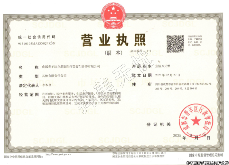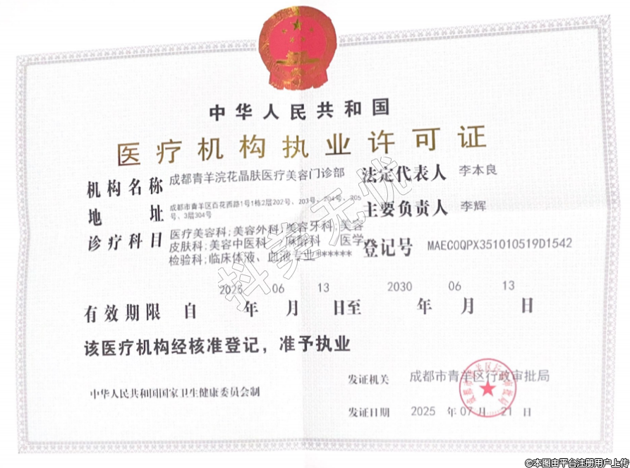 機構(gòu)名稱:成都青羊浣花晶膚醫(yī)療美容門診部