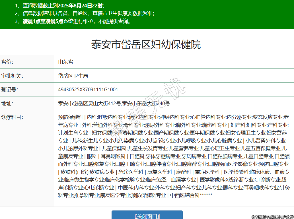 省份:山東省審批機(jī)關(guān):岱岳區(qū)衛(wèi)生局登記號:49430525X37091111G1001地址:泰安市岱岳區(qū)靈山大街412號;泰安市東岳大街240號診療科目:預(yù)防保健科 | 內(nèi)科;呼吸內(nèi)科專業(yè);消化內(nèi)科專業(yè);神經(jīng)內(nèi)科專業(yè);心血管內(nèi)科專業(yè);內(nèi)分泌專業(yè);變態(tài)反應(yīng)專業(yè);老年病專業(yè) | 外科;普通外科專業(yè);骨科專業(yè);泌尿外科專業(yè);胸外科專業(yè);燒傷科專業(yè) | 婦產(chǎn)科;婦科專業(yè);產(chǎn)科專業(yè);計劃生育專業(yè) | 婦女保健科;青春期保健專業(yè);圍產(chǎn)期保健專業(yè);更年期保健專業(yè);婦女心理衛(wèi)生專業(yè);婦女營養(yǎng)專業(yè) | 兒科;新生兒專業(yè);小兒傳染病專業(yè);小兒消化專業(yè);小兒呼吸專業(yè);小兒心臟病專業(yè) | 小兒普通外科專業(yè);小兒泌尿外科專業(yè) | 兒童保健科;兒童生長發(fā)育專業(yè);兒童營養(yǎng)專業(yè);兒童心理衛(wèi)生專業(yè);兒童五官保健專業(yè);兒童康復(fù)專業(yè) | 眼科 | 耳鼻咽喉科 | 口腔科;牙體牙髓病專業(yè);牙周病專業(yè);口腔粘膜病專業(yè);兒童口腔專業(yè);口腔頜面外科專業(yè);口腔修復(fù)專業(yè);口腔正畸專業(yè);口腔種植專業(yè);口腔麻醉專業(yè);口腔頜面醫(yī)學(xué)影像專業(yè);預(yù)防口腔專業(yè) | 皮膚科(門診);皮膚病專業(yè) | 急診醫(yī)學(xué)科 | 康復(fù)醫(yī)學(xué)科 | 麻醉科 | 重癥醫(yī)學(xué)科 | 醫(yī)學(xué)檢驗科;臨床體液、血液專業(yè);臨床微生物學(xué)專業(yè);臨床化學(xué)檢驗專業(yè);臨床免疫、血清學(xué)專業(yè) | 醫(yī)學(xué)影像科;X線診斷專業(yè);CT診斷專業(yè);超聲診斷專業(yè);心電診斷專業(yè) | 中醫(yī)科;內(nèi)科專業(yè);外科專業(yè);婦產(chǎn)科專業(yè);兒科專業(yè);眼科專業(yè);耳鼻咽喉科專業(yè);針灸科專業(yè);推拿科專業(yè);康復(fù)醫(yī)學(xué)專業(yè);預(yù)防保健科專業(yè) | 中西醫(yī)結(jié)合科******級別:二級法定代表人:張寶喜主要負(fù)責(zé)人:張寶喜執(zhí)業(yè)許可證有效期:2025/03/19 -至- 2036/12/20 -