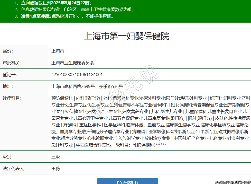 省份:上海市審批機關:上海市衛(wèi)生健康委員會登記號:42501028X31010611G1001地址:上海市高科西路2699號、長樂路536號診療科目:預防保健科 | 內(nèi)科(限門診) | 外科;普通外科專業(yè);泌尿外科專業(yè)(限門診);整形外科專業(yè) | 婦產(chǎn)科;婦科專業(yè);產(chǎn)科專業(yè);計劃生育專業(yè);優(yōu)生學專業(yè);生殖健康與不孕癥專業(yè)(含男科) | 婦女保健科;青春期保健專業(yè);圍產(chǎn)期保健專業(yè);更年期保健專業(yè);婦女心理衛(wèi)生專業(yè);婦女營養(yǎng)專業(yè) | 兒科;新生兒專業(yè) | 兒童保健科;兒童生長發(fā)育專業(yè);兒童營養(yǎng)專業(yè);兒童心理衛(wèi)生專業(yè);兒童五官保健專業(yè);兒童康復專業(yè)(限門診) | 眼科(限門診) | 皮膚科;性傳播疾病專業(yè) | 麻醉科 | 重癥醫(yī)學科 | 醫(yī)學檢驗科;臨床體液、血液專業(yè);臨床微生物學專業(yè);臨床化學檢驗專業(yè);臨床免疫、血清學專業(yè);臨床細胞分子遺傳學專業(yè) | 病理科 | 醫(yī)學影像科;X線診斷專業(yè);CT診斷專業(yè);磁共振成像診斷專業(yè);超聲診斷專業(yè);心電診斷專業(yè);介入放射學專業(yè);放射治療專業(yè) | 中醫(yī)科;婦產(chǎn)科專業(yè);兒科專業(yè);針灸科專業(yè);急診科專業(yè) | 中西醫(yī)結合科(其他一級科目:乳腺保健科)******級別:三級法定代表人:王薇主要負責人:王薇執(zhí)業(yè)許可證有效期:2019/07/09 -至- 2030/08/05 -