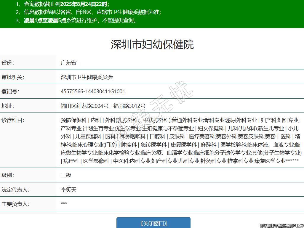 省份:廣東省審批機(jī)關(guān):深圳市衛(wèi)生健康委員會(huì)登記號(hào):45575566-144030411G1001地址:福田區(qū)紅荔路2004號(hào)、福強(qiáng)路3012號(hào)診療科目:預(yù)防保健科 | 內(nèi)科 | 外科(乳腺外科、甲狀腺外科);普通外科專(zhuān)業(yè);骨科專(zhuān)業(yè);泌尿外科專(zhuān)業(yè) | 婦產(chǎn)科;婦科專(zhuān)業(yè);產(chǎn)科專(zhuān)業(yè);計(jì)劃生育專(zhuān)業(yè);優(yōu)生學(xué)專(zhuān)業(yè);生殖健康與不孕癥專(zhuān)業(yè) | 婦女保健科 | 兒科(兒內(nèi)科);新生兒專(zhuān)業(yè) | 小兒外科 | 兒童保健科 | 眼科 | 耳鼻咽喉科 | 口腔科 | 皮膚科 | 醫(yī)療美容科;美容外科;美容皮膚科;美容中醫(yī)科 | 精神科;臨床心理專(zhuān)業(yè)(門(mén)診) | 腫瘤科 | 急診醫(yī)學(xué)科 | 康復(fù)醫(yī)學(xué)科 | 麻醉科 | 醫(yī)學(xué)檢驗(yàn)科;臨床體液、血液專(zhuān)業(yè);臨床微生物學(xué)專(zhuān)業(yè);臨床化學(xué)檢驗(yàn)專(zhuān)業(yè);臨床免疫、血清學(xué)專(zhuān)業(yè);臨床細(xì)胞分子遺傳學(xué)專(zhuān)業(yè);其他(分子生物學(xué)專(zhuān)業(yè)) | 病理科 | 醫(yī)學(xué)影像科 | 中醫(yī)科;內(nèi)科專(zhuān)業(yè);婦產(chǎn)科專(zhuān)業(yè);兒科專(zhuān)業(yè);針灸科專(zhuān)業(yè);推拿科專(zhuān)業(yè);康復(fù)醫(yī)學(xué)專(zhuān)業(yè)******級(jí)別:三級(jí)法定代表人:李笑天主要負(fù)責(zé)人:***執(zhí)業(yè)許可證有效期:2022/05/09 -至- 2037/05/08 -