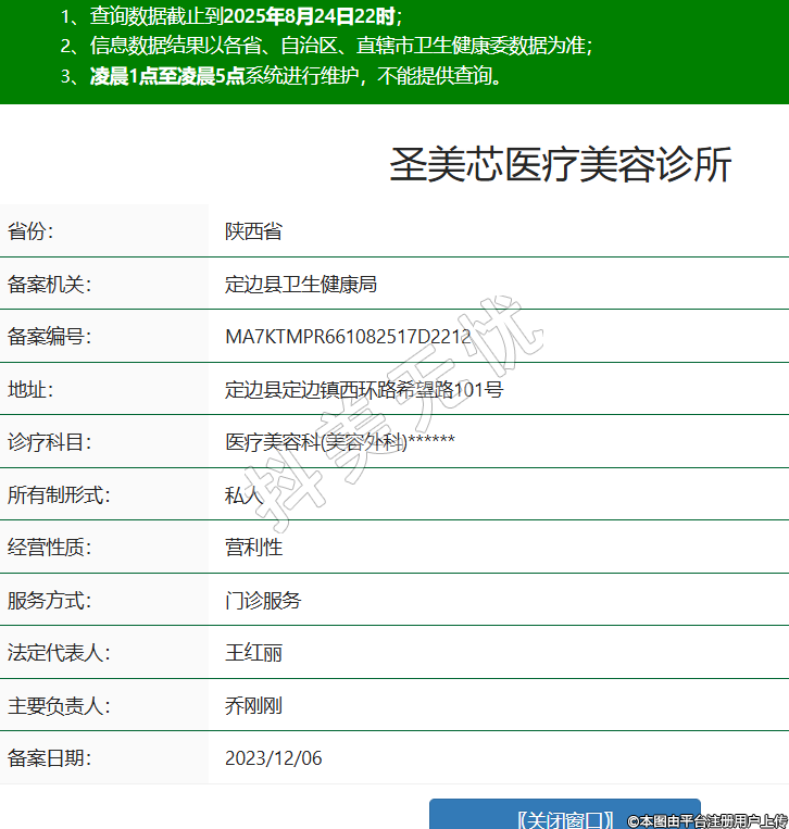 省份:陜西省備案機(jī)關(guān):定邊縣衛(wèi)生健康局備案編號(hào):MA7KTMPR661082517D2212地址:定邊縣定邊鎮(zhèn)西環(huán)路希望路101號(hào)診療科目:醫(yī)療美容科(美容外科)******所有制形式:私人經(jīng)營(yíng)性質(zhì):營(yíng)利性服務(wù)方式:門(mén)診服務(wù)法定代表人:王紅麗主要負(fù)責(zé)人:喬剛剛備案日期:2023/12/06 -