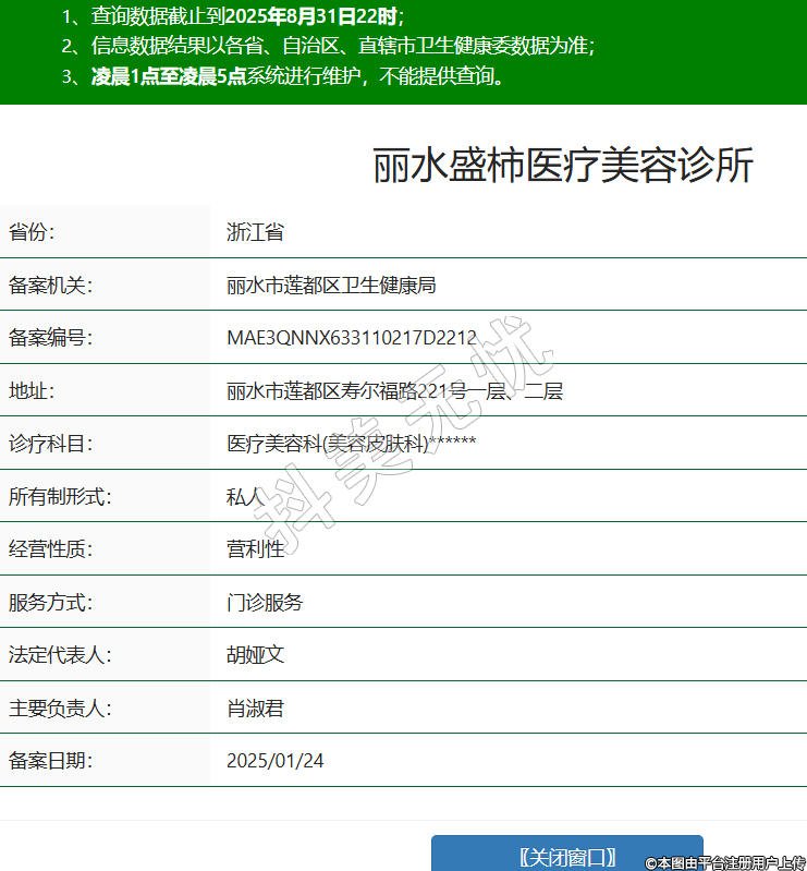 省份:浙江省備案機(jī)關(guān):麗水市蓮都區(qū)衛(wèi)生健康局備案編號(hào):MAE3QNNX633110217D2212地址:麗水市蓮都區(qū)壽爾福路221號(hào)一層、二層診療科目:醫(yī)療美容科(美容皮膚科)******所有制形式:私人經(jīng)營(yíng)性質(zhì):營(yíng)利性服務(wù)方式:門(mén)診服務(wù)法定代表人:胡婭文主要負(fù)責(zé)人:肖淑君備案日期:2025/01/24 -