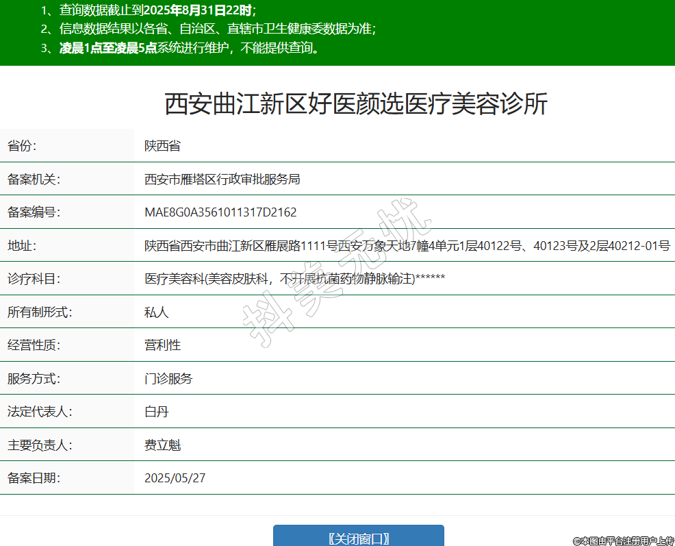 西安曲江新區(qū)好醫(yī)顏選醫(yī)療美容診所,診療科目:醫(yī)療美容科(美容皮膚科,不開(kāi)展抗菌藥物靜脈輸注)******