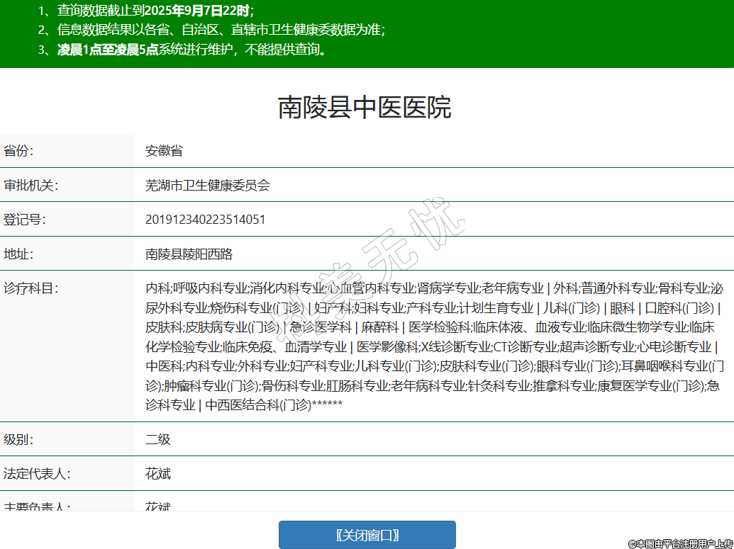 省份:安徽省審批機(jī)關(guān):蕪湖市衛(wèi)生健康委員會(huì)登記號(hào):201912340223514051地址:南陵縣陵陽西路診療科目:內(nèi)科;呼吸內(nèi)科專業(yè);消化內(nèi)科專業(yè);心血管內(nèi)科專業(yè);腎病學(xué)專業(yè);老年病專業(yè) | 外科;普通外科專業(yè);骨科專業(yè);泌尿外科專業(yè);燒傷科專業(yè)(門診) | 婦產(chǎn)科;婦科專業(yè);產(chǎn)科專業(yè);計(jì)劃生育專業(yè) | 兒科(門診) | 眼科 | 口腔科(門診) | 皮膚科;皮膚病專業(yè)(門診) | 急診醫(yī)學(xué)科 | 麻醉科 | 醫(yī)學(xué)檢驗(yàn)科;臨床體液、血液專業(yè);臨床微生物學(xué)專業(yè);臨床化學(xué)檢驗(yàn)專業(yè);臨床免疫、血清學(xué)專業(yè) | 醫(yī)學(xué)影像科;X線診斷專業(yè);CT診斷專業(yè);超聲診斷專業(yè);心電診斷專業(yè) | 中醫(yī)科;內(nèi)科專業(yè);外科專業(yè);婦產(chǎn)科專業(yè);兒科專業(yè)(門診);皮膚科專業(yè)(門診);眼科專業(yè)(門診);耳鼻咽喉科專業(yè)(門診);腫瘤科專業(yè)(門診);骨傷科專業(yè);肛腸科專業(yè);老年病科專業(yè);針灸科專業(yè);推拿科專業(yè);康復(fù)醫(yī)學(xué)專業(yè)(門診);急診科專業(yè) | 中西醫(yī)結(jié)合科(門診)******級(jí)別:二級(jí)法定代表人:花斌主要負(fù)責(zé)人:花斌執(zhí)業(yè)許可證有效期:2024/04/24 -至- 2038/08/24 -