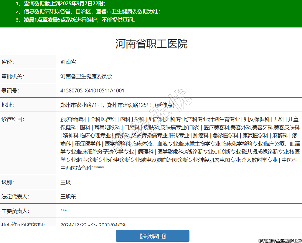 省份:河南省審批機(jī)關(guān):河南省衛(wèi)生健康委員會(huì)登記號(hào):41580705-X41010511A1001地址:鄭州市農(nóng)業(yè)路71號(hào),鄭州市建設(shè)路125號(hào)(延伸點(diǎn))診療科目:預(yù)防保健科 | 全科醫(yī)療科 | 內(nèi)科 | 外科 | 婦產(chǎn)科;婦科專(zhuān)業(yè);產(chǎn)科專(zhuān)業(yè);計(jì)劃生育專(zhuān)業(yè) | 婦女保健科 | 兒科 | 兒童保健科 | 眼科 | 耳鼻咽喉科 | 口腔科 | 皮膚科;皮膚病專(zhuān)業(yè)(門(mén)診) | 醫(yī)療美容科;美容外科;美容牙科;美容皮膚科 | 精神科;臨床心理專(zhuān)業(yè) | 傳染科;腸道傳染病專(zhuān)業(yè);肝炎專(zhuān)業(yè) | 腫瘤科 | 急診醫(yī)學(xué)科 | 康復(fù)醫(yī)學(xué)科 | 麻醉科 | 疼痛科 | 重癥醫(yī)學(xué)科 | 醫(yī)學(xué)檢驗(yàn)科;臨床體液、血液專(zhuān)業(yè);臨床微生物學(xué)專(zhuān)業(yè);臨床化學(xué)檢驗(yàn)專(zhuān)業(yè);臨床免疫、血清學(xué)專(zhuān)業(yè);臨床細(xì)胞分子遺傳學(xué)專(zhuān)業(yè) | 病理科 | 醫(yī)學(xué)影像科;X線(xiàn)診斷專(zhuān)業(yè);CT診斷專(zhuān)業(yè);磁共振成像診斷專(zhuān)業(yè);核醫(yī)學(xué)專(zhuān)業(yè);超聲診斷專(zhuān)業(yè);心電診斷專(zhuān)業(yè);腦電及腦血流圖診斷專(zhuān)業(yè);神經(jīng)肌肉電圖專(zhuān)業(yè);介入放射學(xué)專(zhuān)業(yè) | 中醫(yī)科 | 中西醫(yī)結(jié)合科******級(jí)別:三級(jí)法定代表人:王旭東主要負(fù)責(zé)人:***執(zhí)業(yè)許可證有效期:2024/12/23 -至- 2033/04/09 -