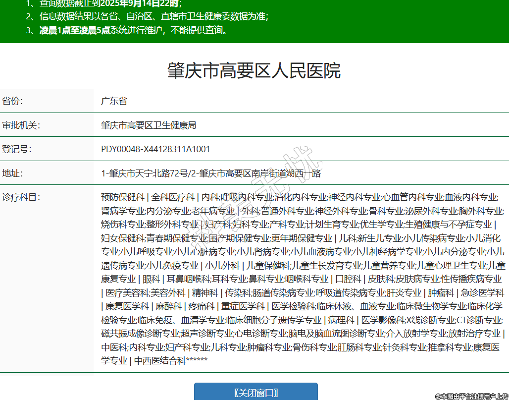 省份:廣東省審批機關:肇慶市高要區(qū)衛(wèi)生健康局登記號:PDY00048-X44128311A1001地址:1-肇慶市天寧北路72號/2-肇慶市高要區(qū)南岸街道湖西一路診療科目:預防保健科 | 全科醫(yī)療科 | 內科;呼吸內科專業(yè);消化內科專業(yè);神經(jīng)內科專業(yè);心血管內科專業(yè);血液內科專業(yè);腎病學專業(yè);內分泌專業(yè);老年病專業(yè) | 外科;普通外科專業(yè);神經(jīng)外科專業(yè);骨科專業(yè);泌尿外科專業(yè);胸外科專業(yè);燒傷科專業(yè);整形外科專業(yè) | 婦產(chǎn)科;婦科專業(yè);產(chǎn)科專業(yè);計劃生育專業(yè);優(yōu)生學專業(yè);生殖健康與不孕癥專業(yè) | 婦女保健科;青春期保健專業(yè);圍產(chǎn)期保健專業(yè);更年期保健專業(yè) | 兒科;新生兒專業(yè);小兒傳染病專業(yè);小兒消化專業(yè);小兒呼吸專業(yè);小兒心臟病專業(yè);小兒腎病專業(yè);小兒血液病專業(yè);小兒神經(jīng)病學專業(yè);小兒內分泌專業(yè);小兒遺傳病專業(yè);小兒免疫專業(yè) | 小兒外科 | 兒童保健科;兒童生長發(fā)育專業(yè);兒童營養(yǎng)專業(yè);兒童心理衛(wèi)生專業(yè);兒童康復專業(yè) | 眼科 | 耳鼻咽喉科;耳科專業(yè);鼻科專業(yè);咽喉科專業(yè) | 口腔科 | 皮膚科;皮膚病專業(yè);性傳播疾病專業(yè) | 醫(yī)療美容科;美容外科 | 精神科 | 傳染科;腸道傳染病專業(yè);呼吸道傳染病專業(yè);肝炎專業(yè) | 腫瘤科 | 急診醫(yī)學科 | 康復醫(yī)學科 | 麻醉科 | 疼痛科 | 重癥醫(yī)學科 | 醫(yī)學檢驗科;臨床體液、血液專業(yè);臨床微生物學專業(yè);臨床化學檢驗專業(yè);臨床免疫、血清學專業(yè);臨床細胞分子遺傳學專業(yè) | 病理科 | 醫(yī)學影像科;X線診斷專業(yè);CT診斷專業(yè);磁共振成像診斷專業(yè);超聲診斷專業(yè);心電診斷專業(yè);腦電及腦血流圖診斷專業(yè);介入放射學專業(yè);放射治療專業(yè) | 中醫(yī)科;內科專業(yè);婦產(chǎn)科專業(yè);兒科專業(yè);腫瘤科專業(yè);骨傷科專業(yè);肛腸科專業(yè);針灸科專業(yè);推拿科專業(yè);康復醫(yī)學專業(yè) | 中西醫(yī)結合科******級別:三級法定代表人:杜國聰主要負責人:杜國聰執(zhí)業(yè)許可證有效期:2024/07/25 -至- 2033/12/31 -