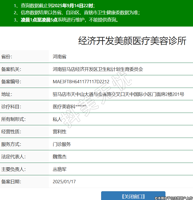 省份:河南省備案機關(guān):河南駐馬店經(jīng)濟開發(fā)區(qū)衛(wèi)生和計劃生育委員會備案編號:MAE3FT8H641177117D2212地址:駐馬店市天中山大道與金雀路交叉口天中國際小區(qū)門面房2樓201號診療科目:醫(yī)療美容科******所有制形式:私人經(jīng)營性質(zhì):營利性服務(wù)方式:門診服務(wù)法定代表人:魏雪杰主要負責人:叢艷軍備案日期:2025/01/17 -