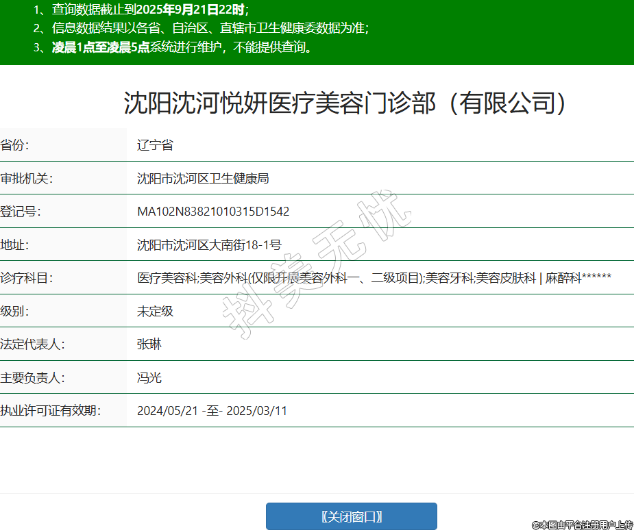 沈陽沈河悅妍醫(yī)療美容門診部(有限公司),診療科目:醫(yī)療美容科;美容外科(僅限開展美容外科一、二級(jí)項(xiàng)目);美容牙科;美容皮膚科 | 麻醉科******