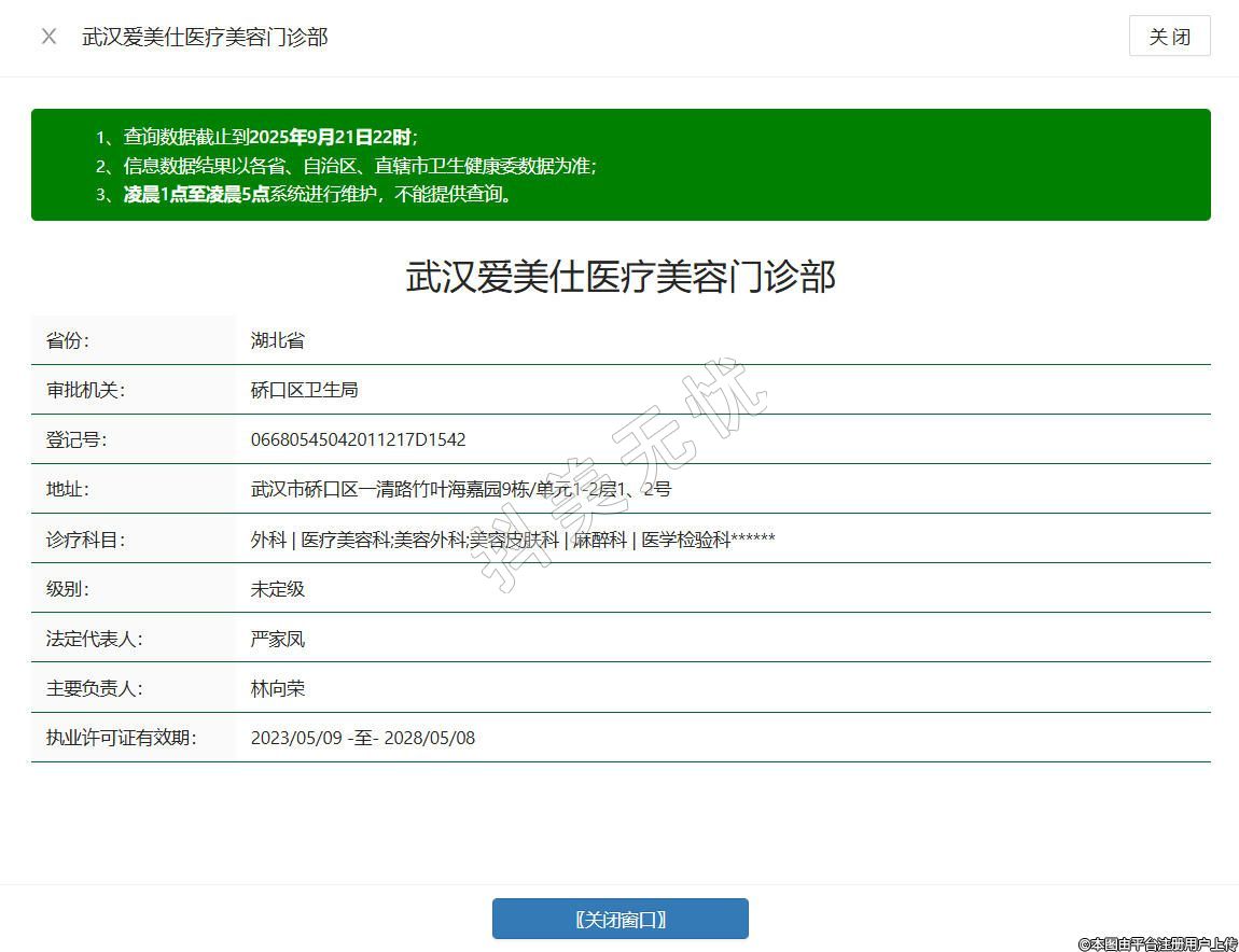 武漢愛美仕醫(yī)療美容門診部于2013年成立,坐落于武漢市硚口區(qū)一清路竹葉海嘉園9棟/單元1-2層1、2號,是經(jīng)合規(guī)審批的專業(yè)醫(yī)療美容機構(gòu),成立多年來深耕醫(yī)美領(lǐng)域,匯聚了專業(yè)的醫(yī)生團隊,依托先進的醫(yī)療設備與標準化診療流程,形成整形外科、皮膚美容等特色服務板塊,始終秉持專業(yè)誠信的服務理念,以規(guī)范醫(yī)療服務贏得顧客認可。