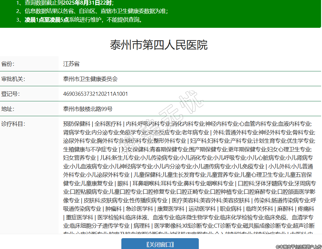 省份:江蘇省審批機(jī)關(guān):泰州市衛(wèi)生健康委員會(huì)登記號(hào):46903653732120211A1001地址:泰州市鼓樓北路99號(hào)診療科目:預(yù)防保健科 | 全科醫(yī)療科 | 內(nèi)科;呼吸內(nèi)科專業(yè);消化內(nèi)科專業(yè);神經(jīng)內(nèi)科專業(yè);心血管內(nèi)科專業(yè);血液內(nèi)科專業(yè);腎病學(xué)專業(yè);內(nèi)分泌專業(yè);免疫學(xué)專業(yè);變態(tài)反應(yīng)專業(yè);老年病專業(yè) | 外科;普通外科專業(yè);神經(jīng)外科專業(yè);骨科專業(yè);泌尿外科專業(yè);胸外科專業(yè);燒傷科專業(yè);整形外科專業(yè) | 婦產(chǎn)科;婦科專業(yè);產(chǎn)科專業(yè);計(jì)劃生育專業(yè);優(yōu)生學(xué)專業(yè);生殖健康與不孕癥專業(yè) | 婦女保健科;青春期保健專業(yè);圍產(chǎn)期保健專業(yè);更年期保健專業(yè);婦女心理衛(wèi)生專業(yè);婦女營養(yǎng)專業(yè) | 兒科;新生兒專業(yè);小兒傳染病專業(yè);小兒消化專業(yè);小兒呼吸專業(yè);小兒心臟病專業(yè);小兒腎病專業(yè);小兒血液病專業(yè);小兒神經(jīng)病學(xué)專業(yè);小兒內(nèi)分泌專業(yè);小兒遺傳病專業(yè);小兒免疫專業(yè) | 小兒外科;小兒普通外科專業(yè);小兒泌尿外科專業(yè) | 兒童保健科;兒童生長發(fā)育專業(yè);兒童營養(yǎng)專業(yè);兒童心理衛(wèi)生專業(yè);兒童五官保健專業(yè);兒童康復(fù)專業(yè) | 眼科 | 耳鼻咽喉科;耳科專業(yè);鼻科專業(yè);咽喉科專業(yè) | 口腔科;牙體牙髓病專業(yè);牙周病專業(yè);口腔粘膜病專業(yè);兒童口腔專業(yè);口腔修復(fù)專業(yè);口腔正畸專業(yè);口腔種植專業(yè);口腔麻醉專業(yè);口腔頜面醫(yī)學(xué)影像專業(yè) | 皮膚科;皮膚病專業(yè);性傳播疾病專業(yè) | 醫(yī)療美容科;美容外科;美容皮膚科 | 傳染科;腸道傳染病專業(yè);呼吸道傳染病專業(yè) | 腫瘤科 | 急診醫(yī)學(xué)科 | 康復(fù)醫(yī)學(xué)科 | 運(yùn)動(dòng)醫(yī)學(xué)科 | 職業(yè)病科 | 臨終關(guān)懷科 | 麻醉科 | 疼痛科 | 重癥醫(yī)學(xué)科 | 醫(yī)學(xué)檢驗(yàn)科;臨床體液、血液專業(yè);臨床微生物學(xué)專業(yè);臨床化學(xué)檢驗(yàn)專業(yè);臨床免疫、血清學(xué)專業(yè);臨床細(xì)胞分子遺傳學(xué)專業(yè) | 病理科 | 醫(yī)學(xué)影像科;X線診斷專業(yè);CT診斷專業(yè);磁共振成像診斷專業(yè);超聲診斷專業(yè);心電診斷專業(yè);腦電及腦血流圖診斷專業(yè);神經(jīng)肌肉電圖專業(yè);介入放射學(xué)專業(yè);放射治療專業(yè) | 中醫(yī)科;內(nèi)科專業(yè);針灸科專業(yè);推拿科專業(yè);康復(fù)醫(yī)學(xué)專業(yè)******級(jí)別:三級(jí)法定代表人:江燦華主要負(fù)責(zé)人:江燦華執(zhí)業(yè)許可證有效期:2022/12/08 -至- 2037/12/07 -