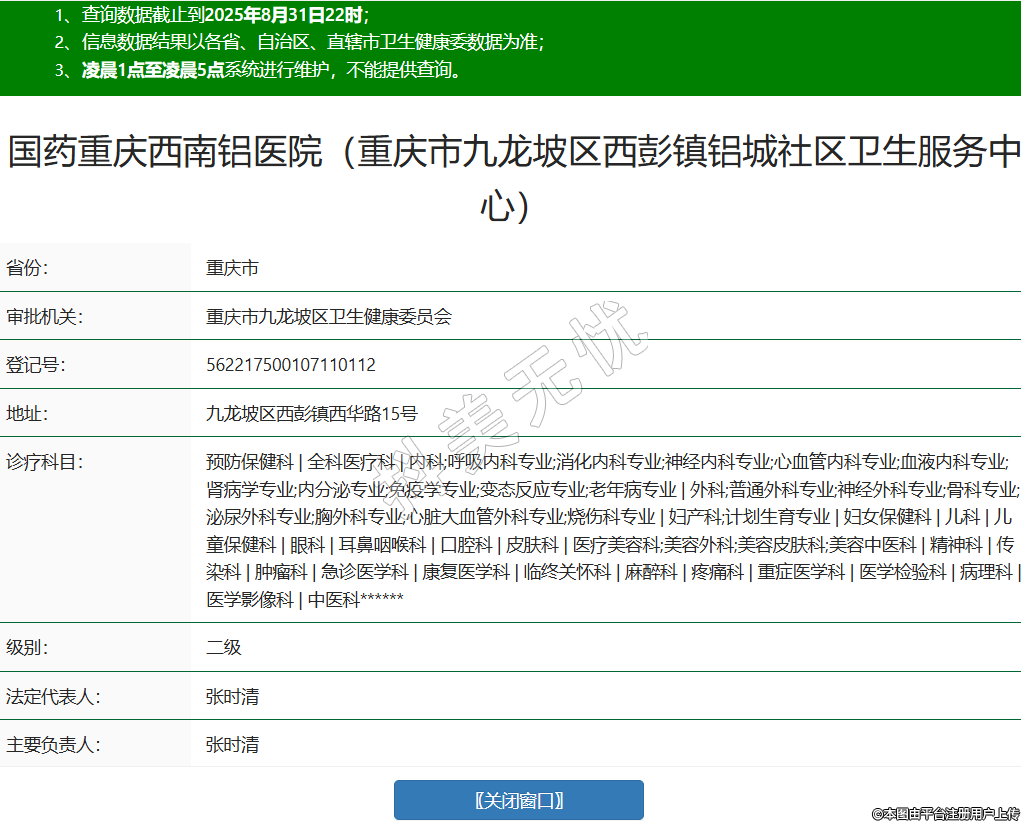 國(guó)藥重慶西南鋁醫(yī)院(重慶市九龍坡區(qū)西彭鎮(zhèn)鋁城社區(qū)衛(wèi)生服務(wù)中心)皮膚美容