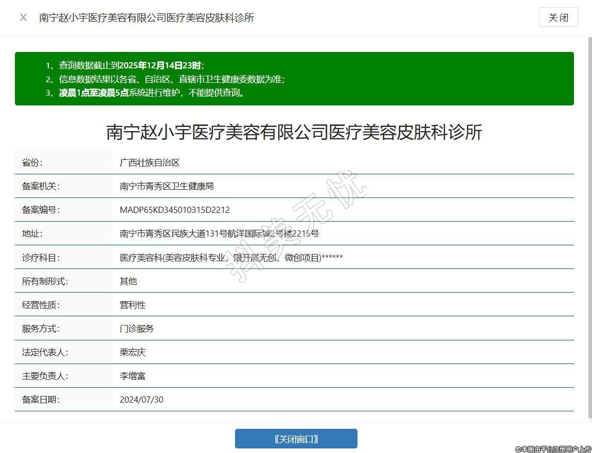 南寧趙小宇醫(yī)療美容有限公司醫(yī)療美容皮膚科診所