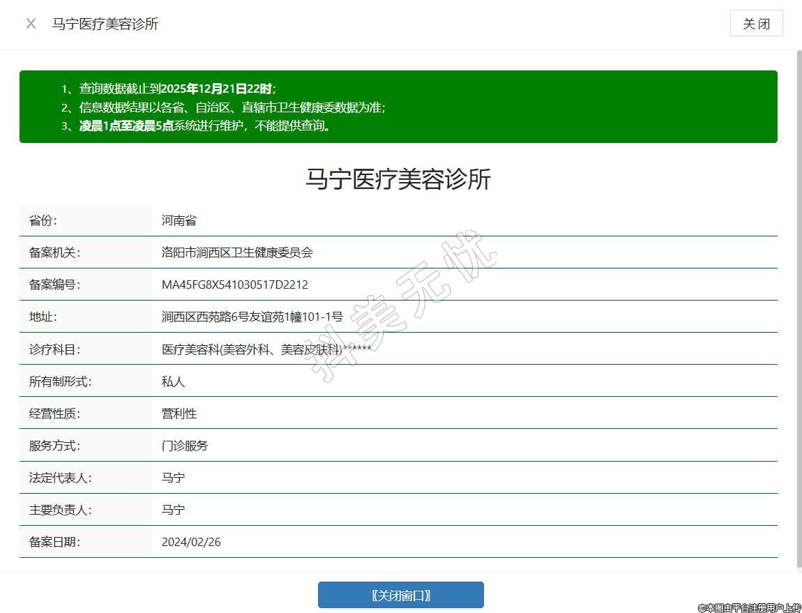 洛陽馬寧醫(yī)療美容診所于2018年成立,是持有正規(guī)醫(yī)療機構(gòu)執(zhí)業(yè)許可證的合規(guī)醫(yī)美機構(gòu),坐落于河南省洛陽市澗西區(qū)西苑路6號友誼苑1幢101-1號,合規(guī)開展皮膚美容、微整形、常規(guī)整形手術等服務,涵蓋光子嫩膚、水光注射、雙眼皮成形、疤痕修復等項目,配備專業(yè)診療設備與標準手術室,規(guī)范術前評估、術中操作與術后護理全流程,公開公示服務項目與價格信息,保障消費者知情權。
