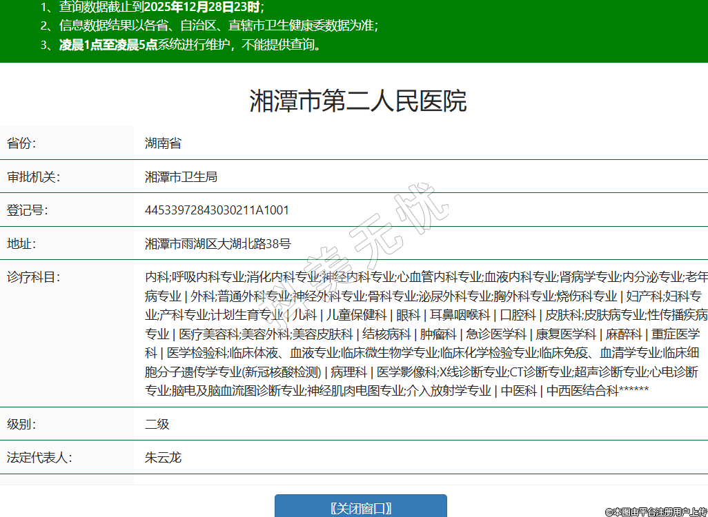 省份:湖南省審批機(jī)關(guān):湘潭市衛(wèi)生局登記號(hào):44533972843030211A1001地址:湘潭市雨湖區(qū)大湖北路38號(hào)診療科目:內(nèi)科;呼吸內(nèi)科專業(yè);消化內(nèi)科專業(yè);神經(jīng)內(nèi)科專業(yè);心血管內(nèi)科專業(yè);血液內(nèi)科專業(yè);腎病學(xué)專業(yè);內(nèi)分泌專業(yè);老年病專業(yè) | 外科;普通外科專業(yè);神經(jīng)外科專業(yè);骨科專業(yè);泌尿外科專業(yè);胸外科專業(yè);燒傷科專業(yè) | 婦產(chǎn)科;婦科專業(yè);產(chǎn)科專業(yè);計(jì)劃生育專業(yè) | 兒科 | 兒童保健科 | 眼科 | 耳鼻咽喉科 | 口腔科 | 皮膚科;皮膚病專業(yè);性傳播疾病專業(yè) | 醫(yī)療美容科;美容外科;美容皮膚科 | 結(jié)核病科 | 腫瘤科 | 急診醫(yī)學(xué)科 | 康復(fù)醫(yī)學(xué)科 | 麻醉科 | 重癥醫(yī)學(xué)科 | 醫(yī)學(xué)檢驗(yàn)科;臨床體液、血液專業(yè);臨床微生物學(xué)專業(yè);臨床化學(xué)檢驗(yàn)專業(yè);臨床免疫、血清學(xué)專業(yè);臨床細(xì)胞分子遺傳學(xué)專業(yè)(新冠核酸檢測(cè)) | 病理科 | 醫(yī)學(xué)影像科;X線診斷專業(yè);CT診斷專業(yè);超聲診斷專業(yè);心電診斷專業(yè);腦電及腦血流圖診斷專業(yè);神經(jīng)肌肉電圖專業(yè);介入放射學(xué)專業(yè) | 中醫(yī)科 | 中西醫(yī)結(jié)合科******級(jí)別:二級(jí)法定代表人:朱云龍主要負(fù)責(zé)人:朱云龍執(zhí)業(yè)許可證有效期:2022/10/12 -至- 2037/10/12 -