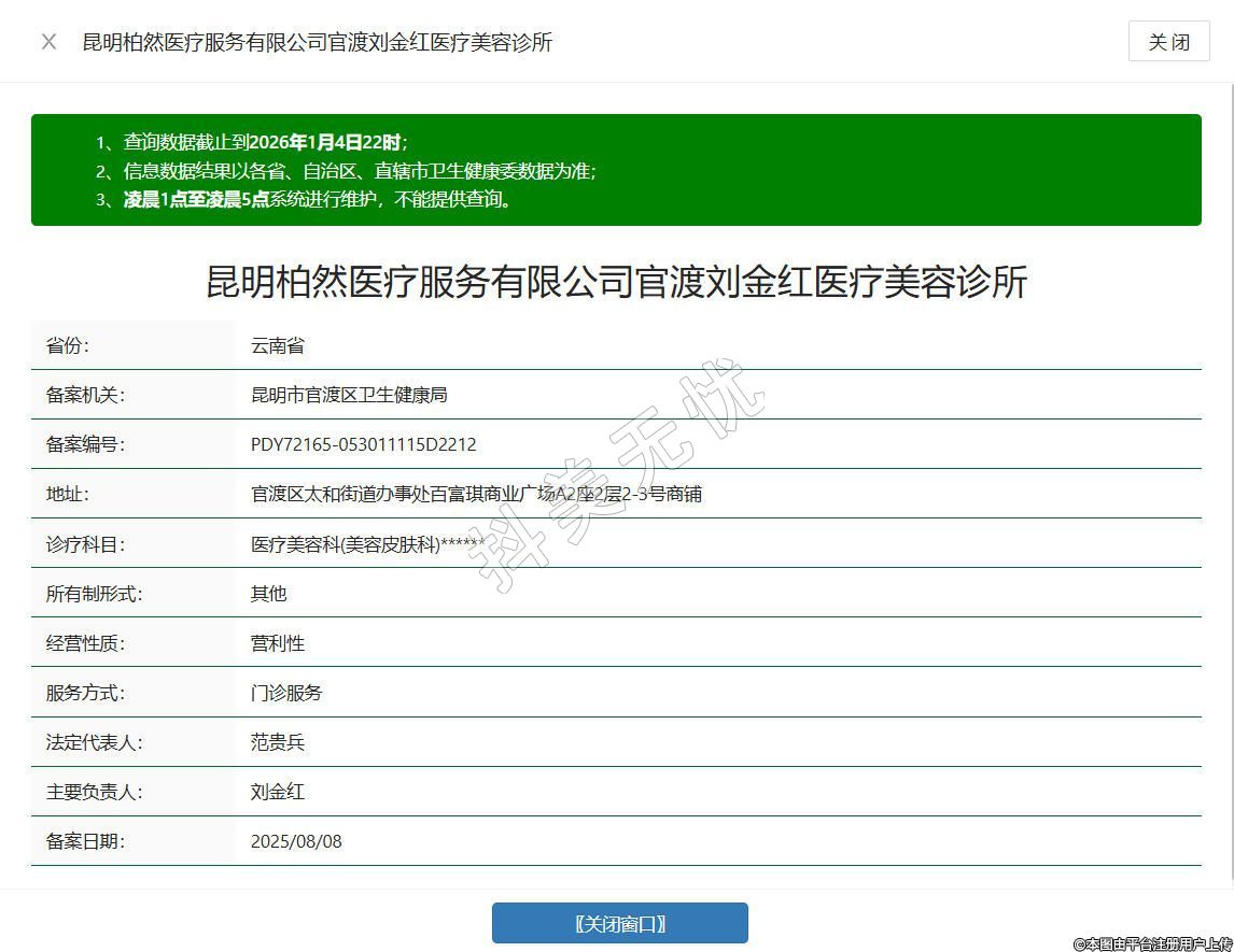 昆明柏然醫(yī)療服務有限公司官渡劉金紅醫(yī)療美容診所
