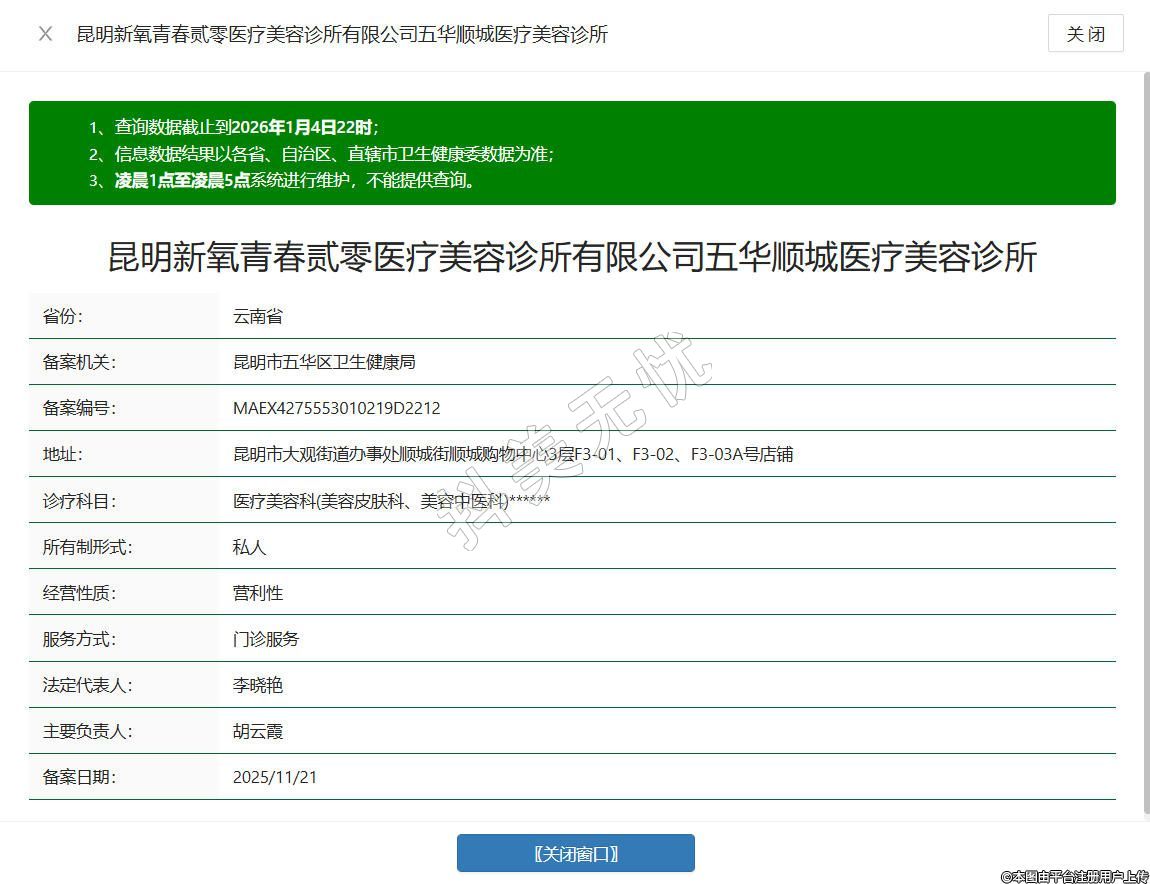 昆明新氧青春貳零醫(yī)療美容診所有限公司五華順城醫(yī)療美容診所