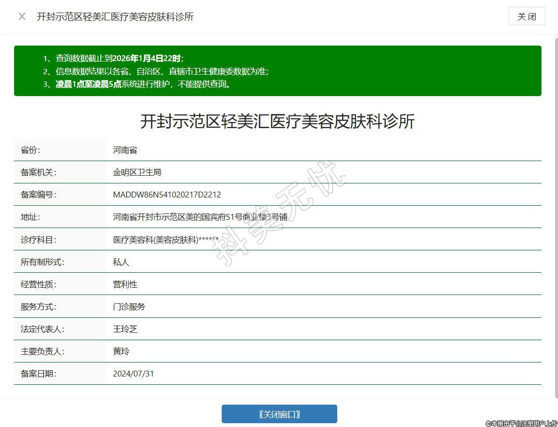 開封輕美匯醫(yī)療美容診所成立于2024年,位于河南省開封市示范區(qū)美的國賓府S1號商業(yè)樓3號鋪,是一家依法合規(guī)運營的專業(yè)醫(yī)美機(jī)構(gòu),診療設(shè)備與藥品均從合規(guī)渠道購進(jìn),符合國家藥械管理規(guī)范,全程遵循無菌操作標(biāo)準(zhǔn),專注于皮膚管理、微創(chuàng)注射、激光治療等輕醫(yī)美項目,根據(jù)顧客膚質(zhì)與需求定制個性化方案。