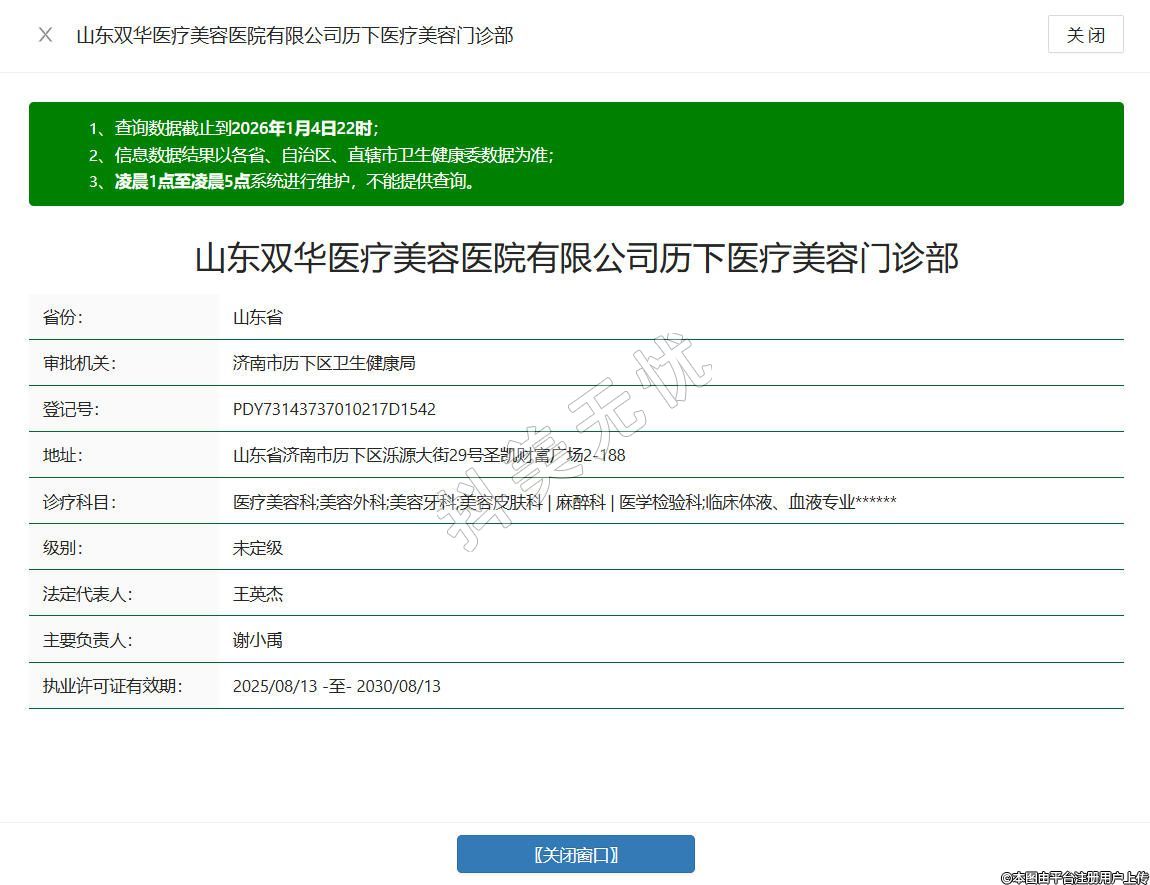 山東雙華醫(yī)療美容醫(yī)院有限公司歷下醫(yī)療美容門診部